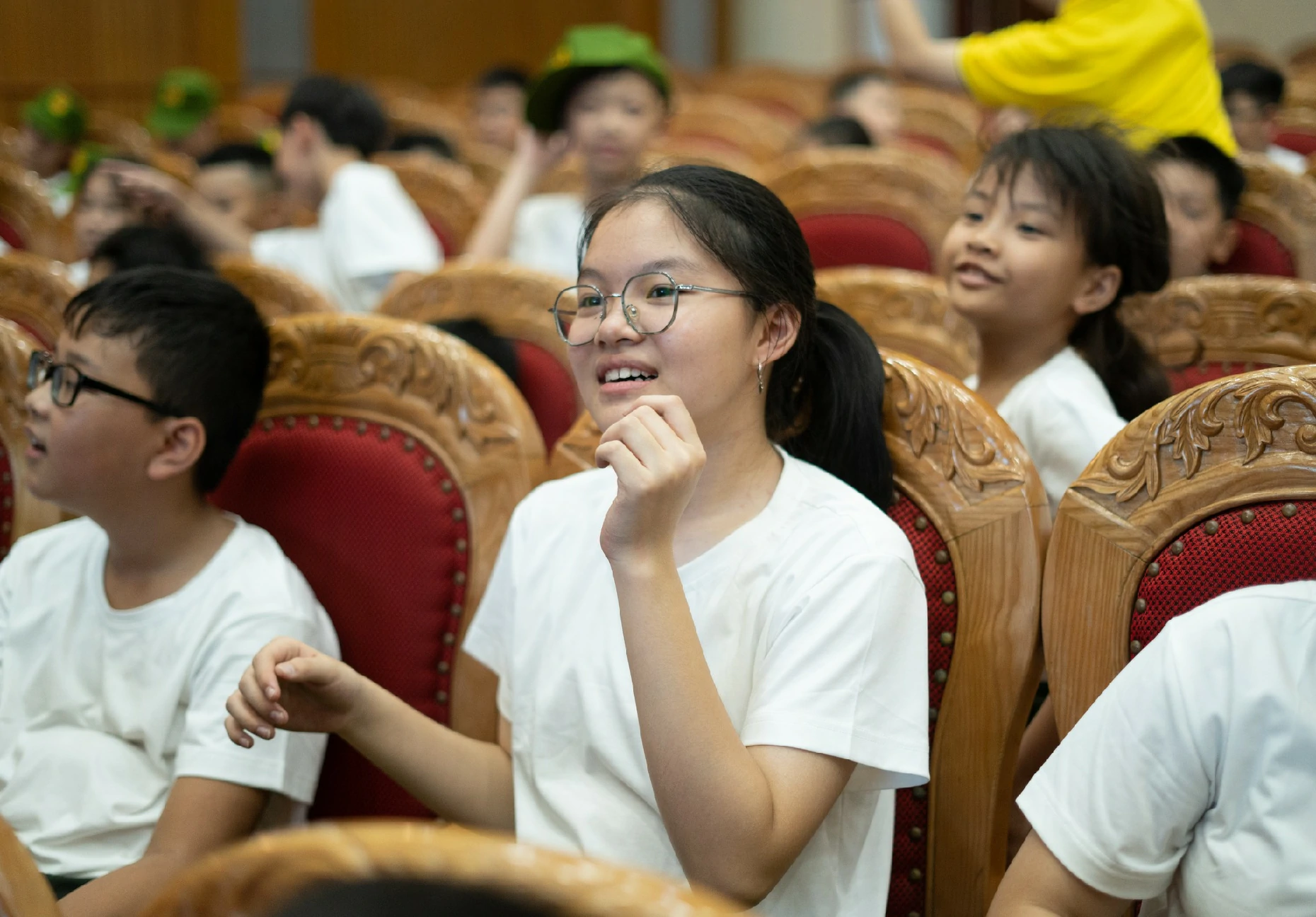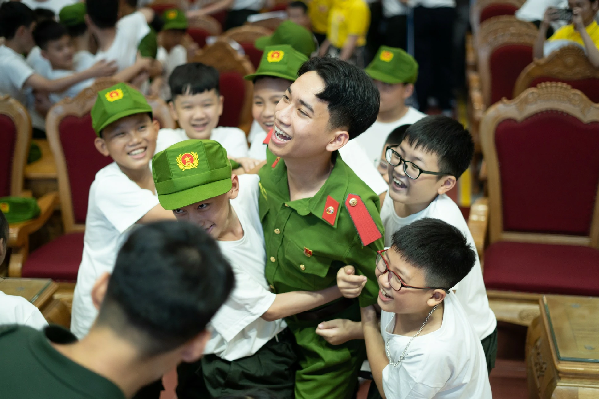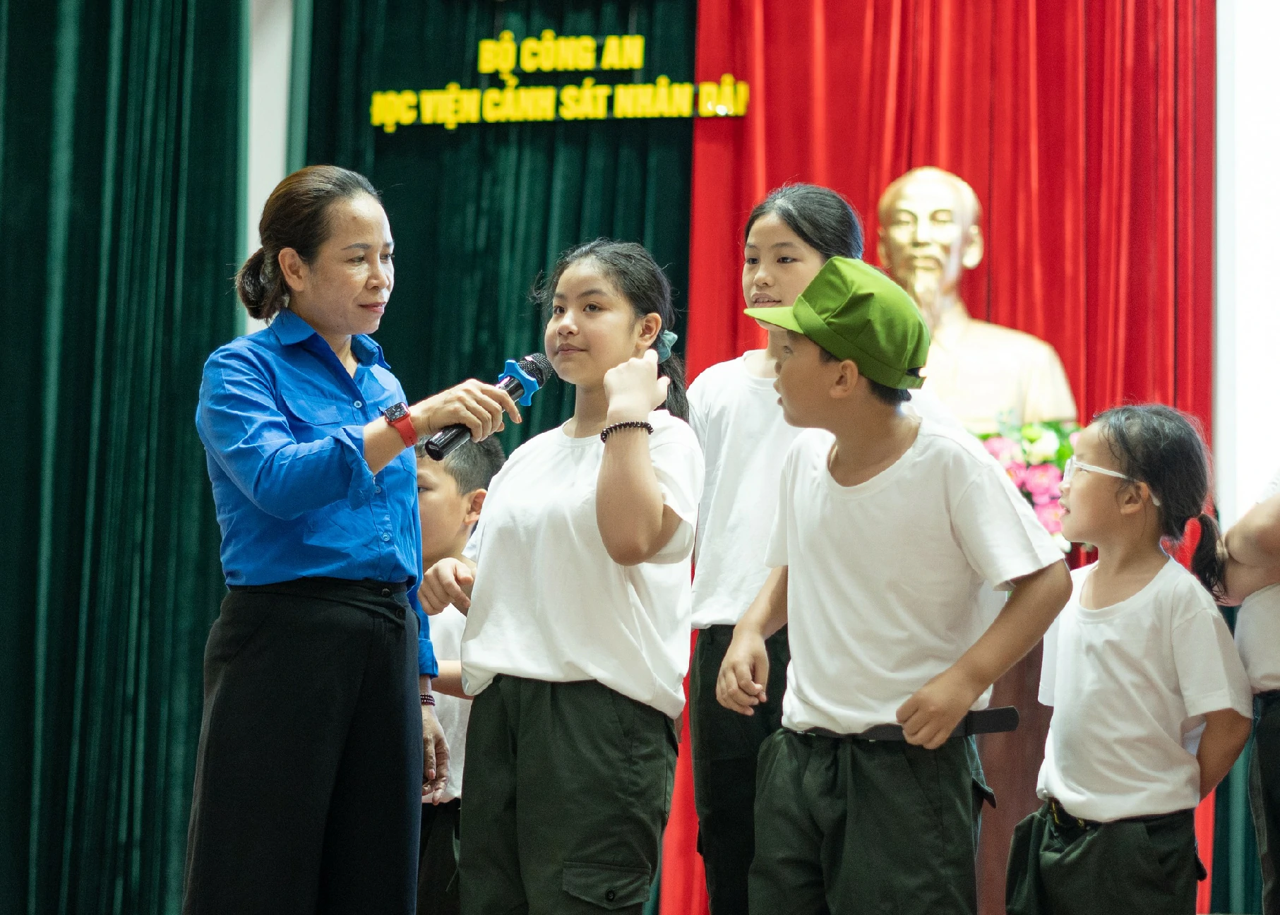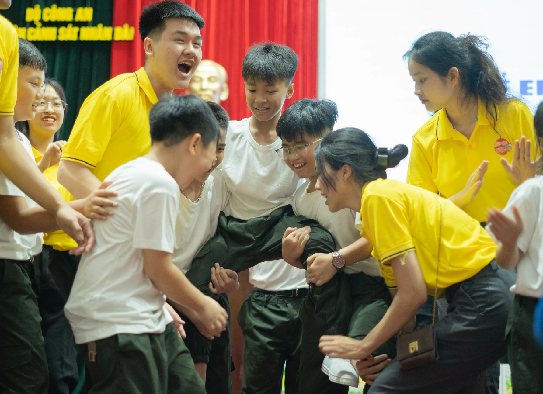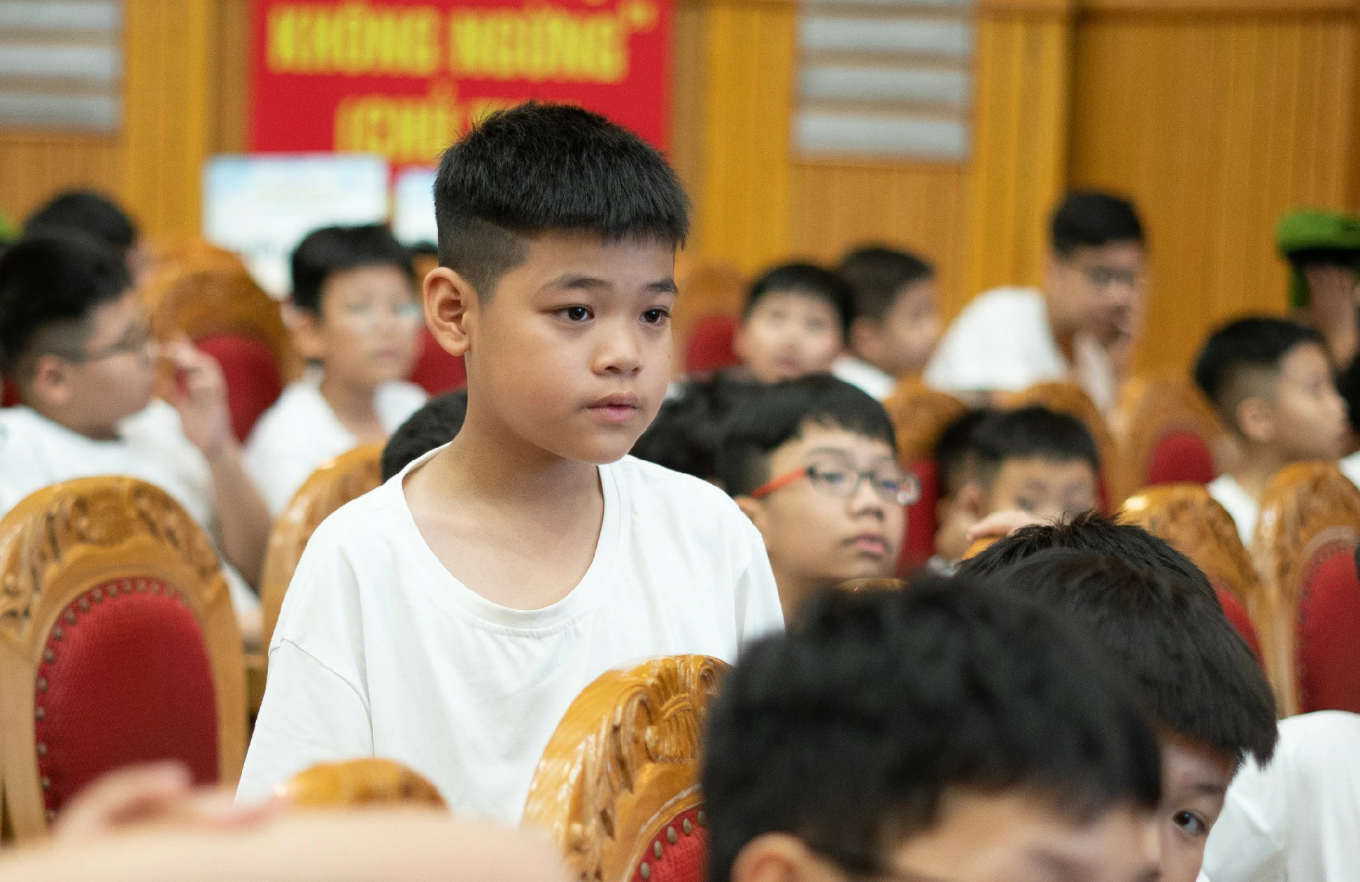au khi ăn sáng, các chiến sĩ công an nhí bắt đầu sinh hoạt tiểu đội rồi di chuyển về hội trường Trần Đức Trường để đến với chuyên đề: ” Kỹ năng sử dụng Internet an toàn và thông minh” ![]()