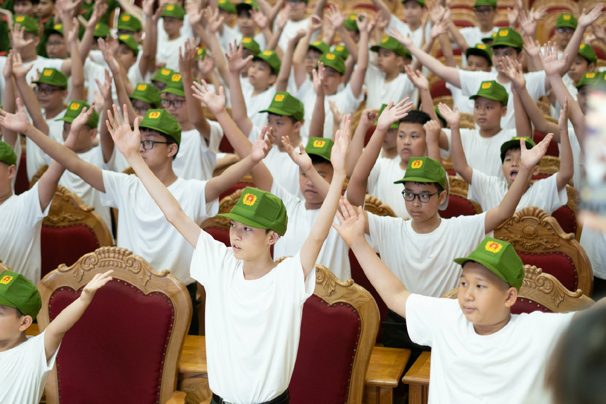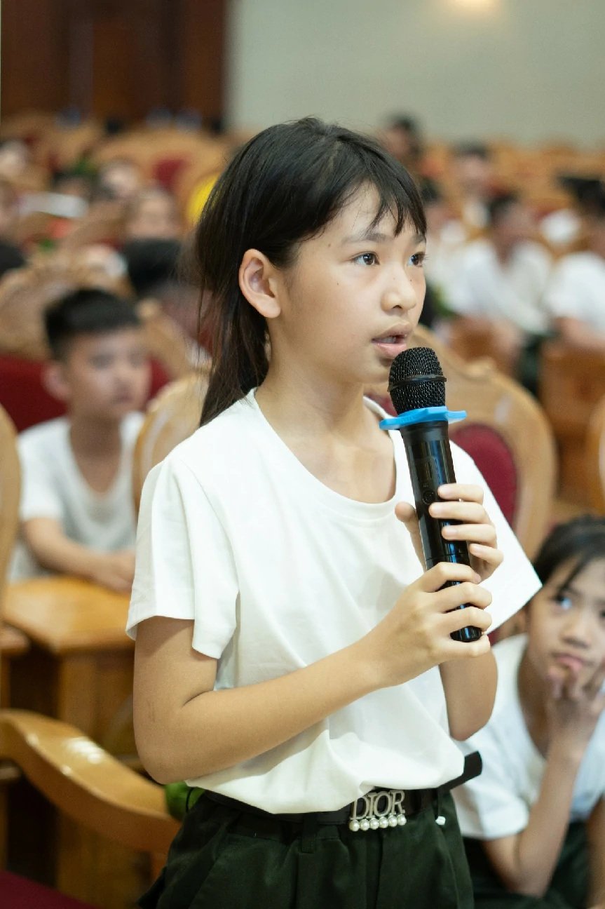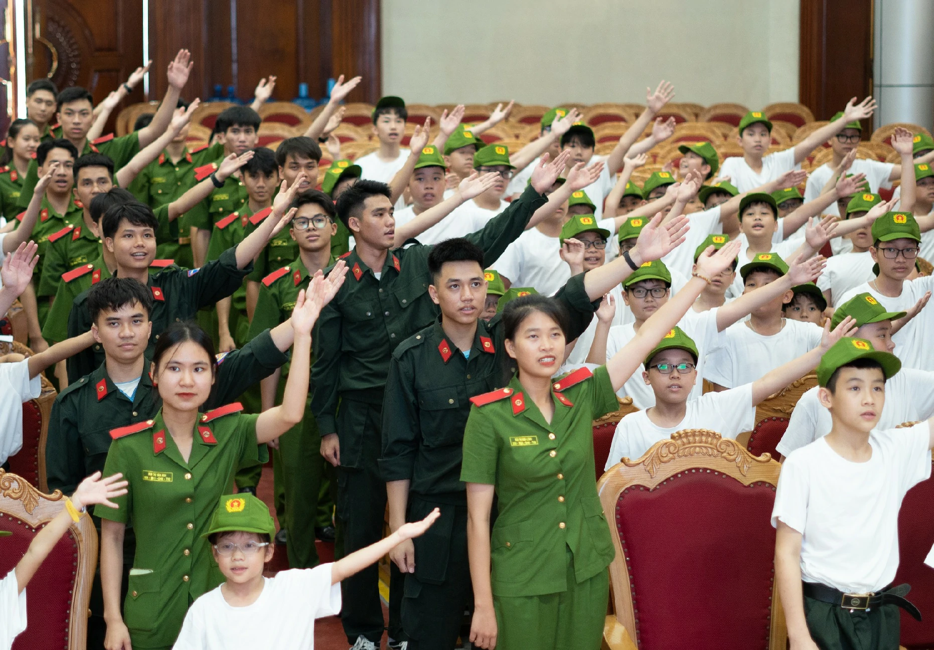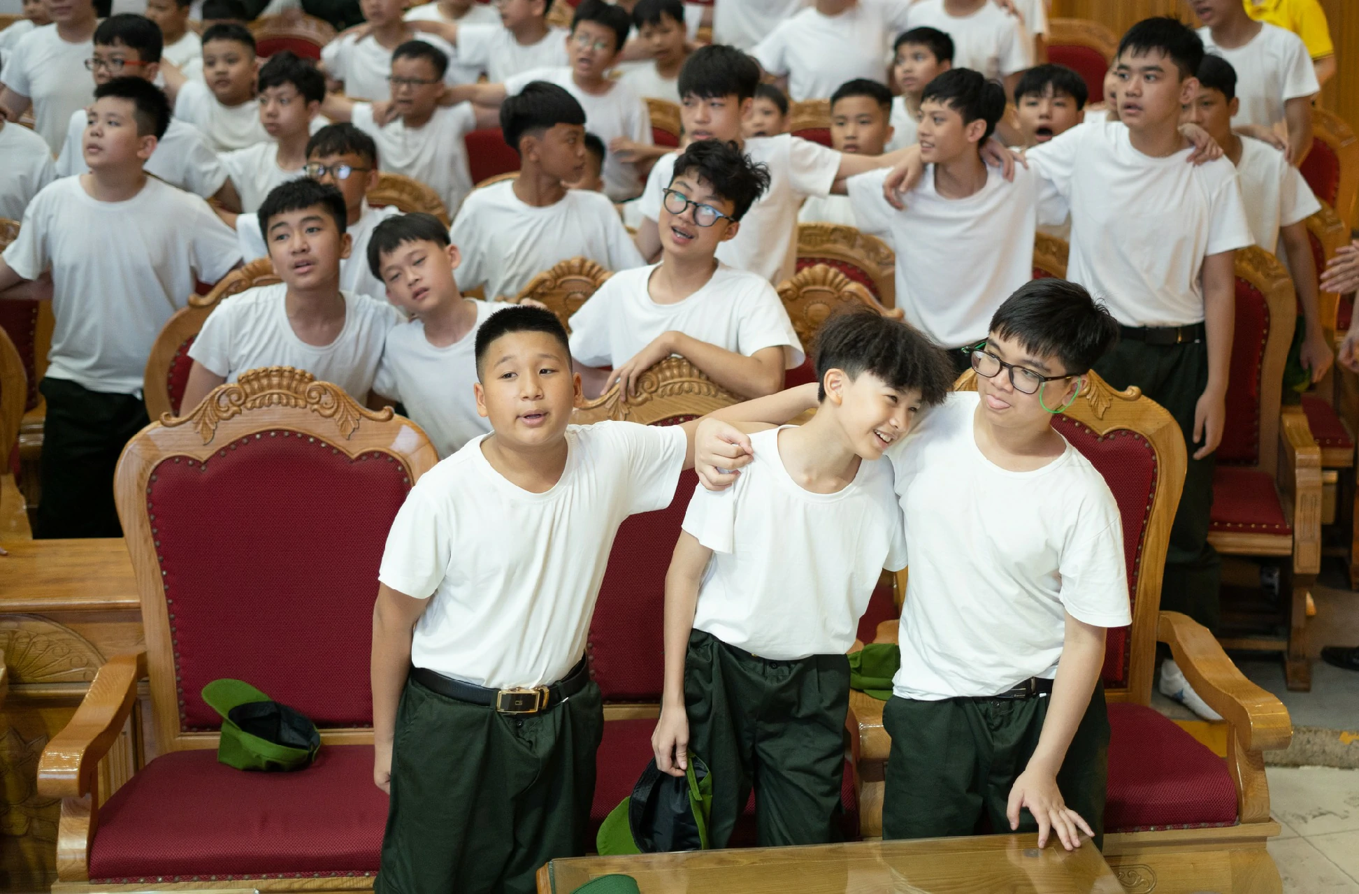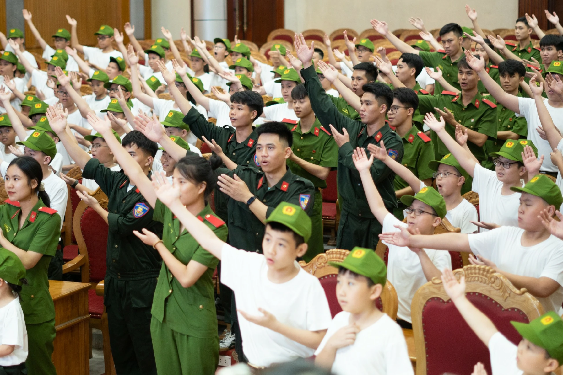 au khi ăn sáng, các chiến sĩ công an nhí bắt đầu sinh hoạt tiểu đội rồi di chuyển về hội trường Trần Đức Trường để đến với chuyên đề: ” Kỹ năng sử dụng Internet an toàn và thông minh” ![]()