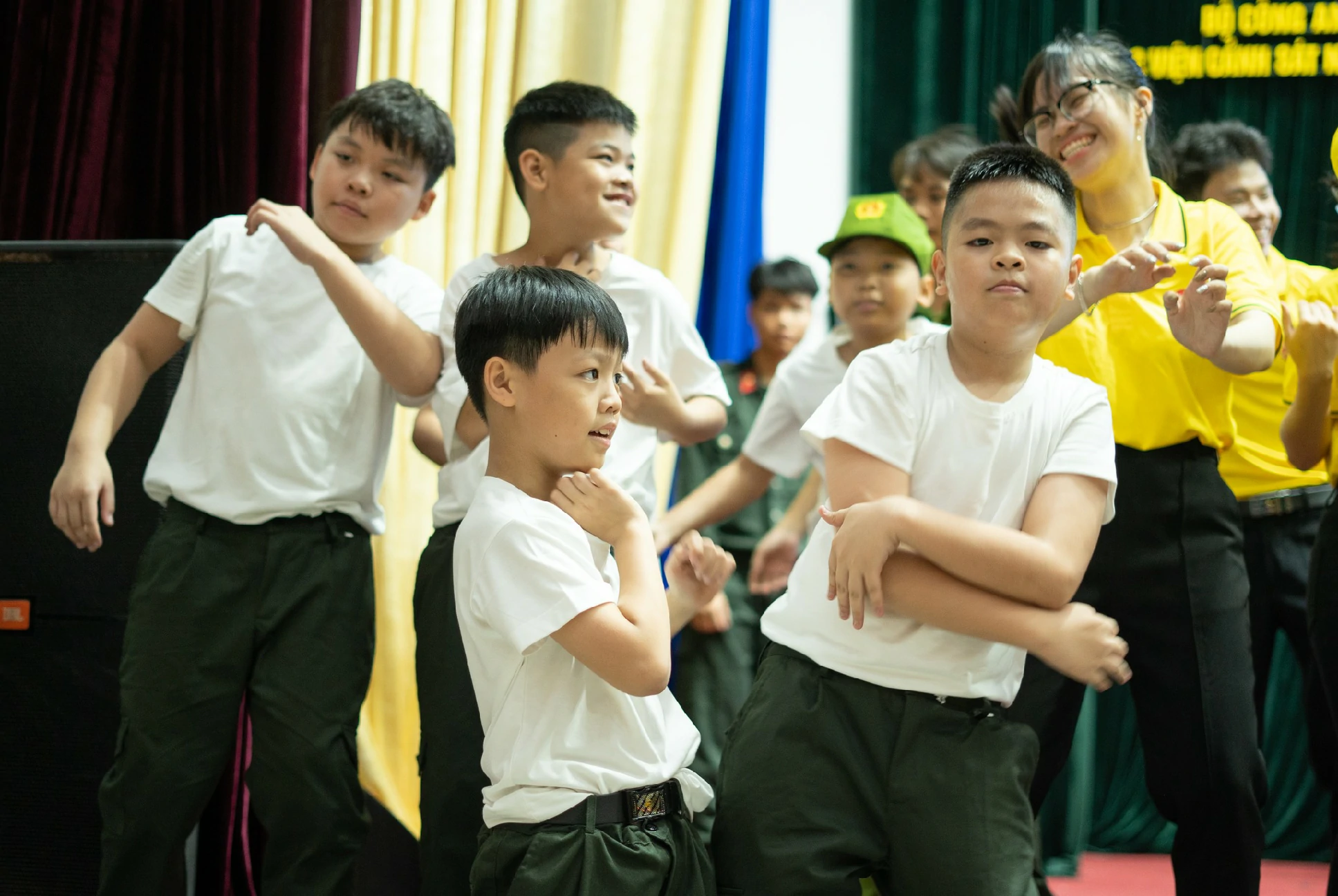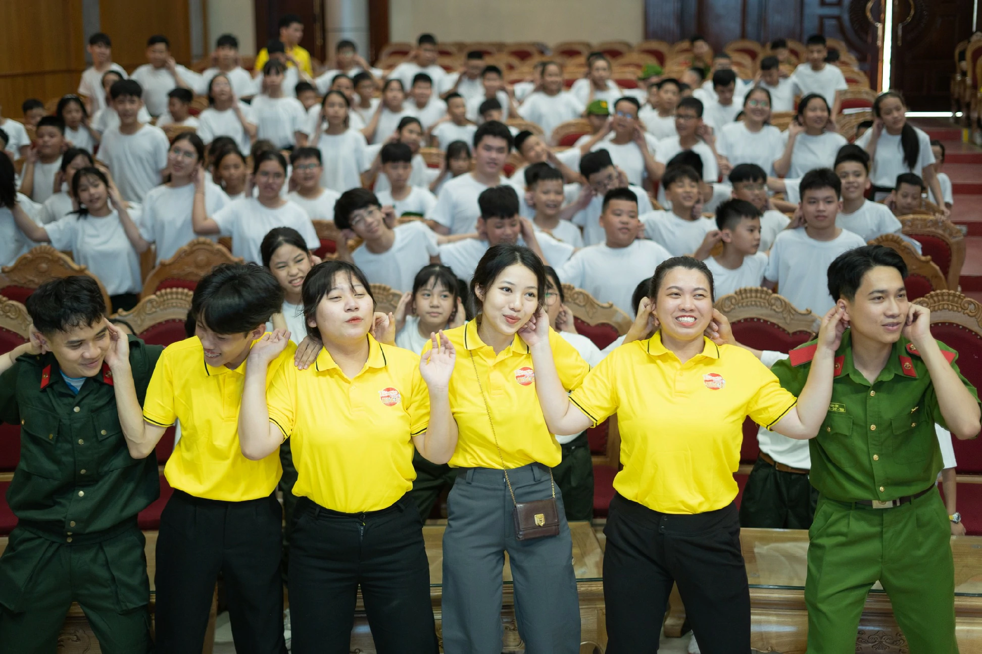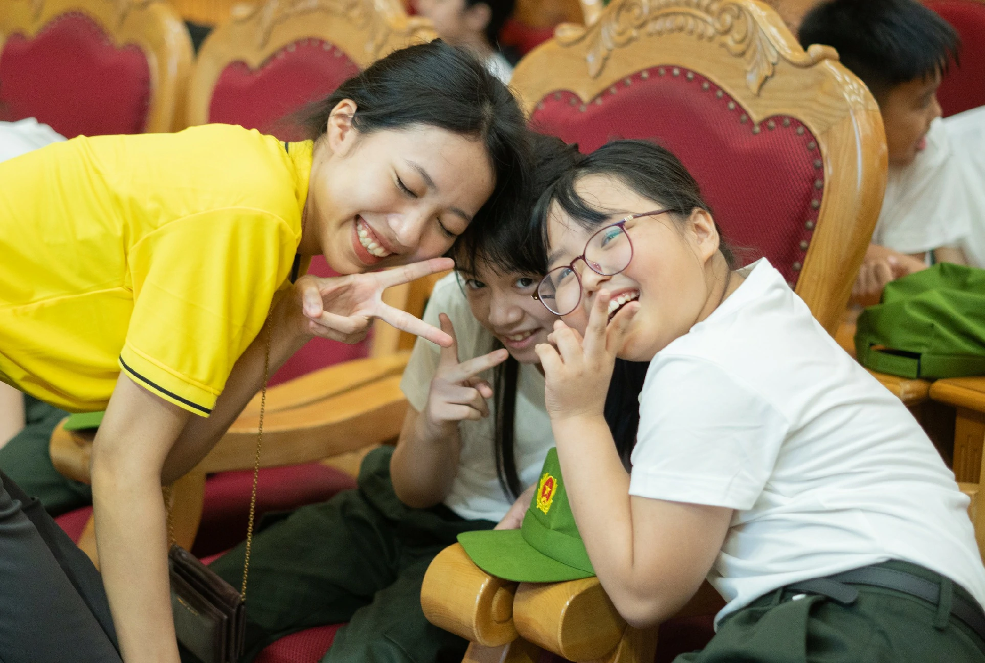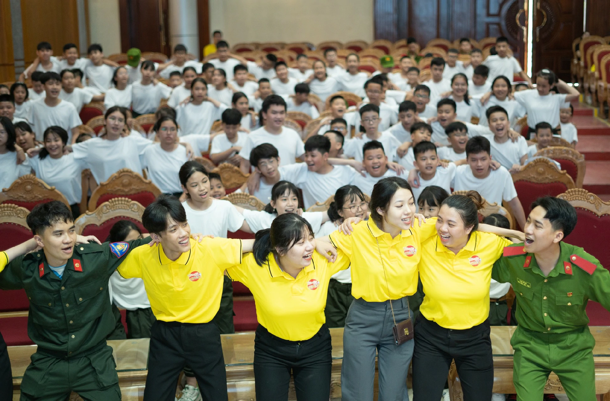 au khi ăn sáng, các chiến sĩ công an nhí bắt đầu sinh hoạt tiểu đội rồi di chuyển về hội trường Trần Đức Trường để đến với chuyên đề: ” Kỹ năng sử dụng Internet an toàn và thông minh” ![]()