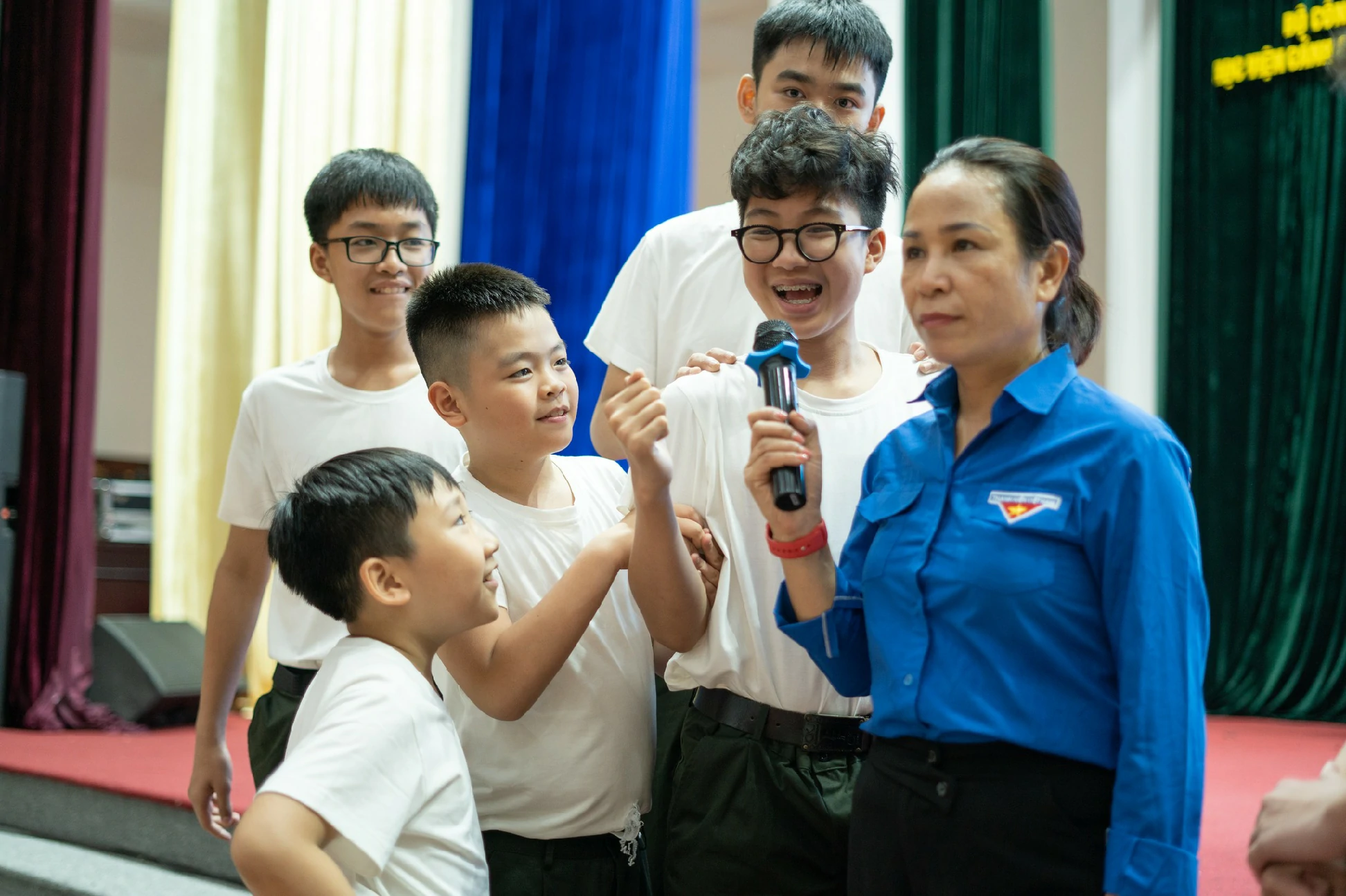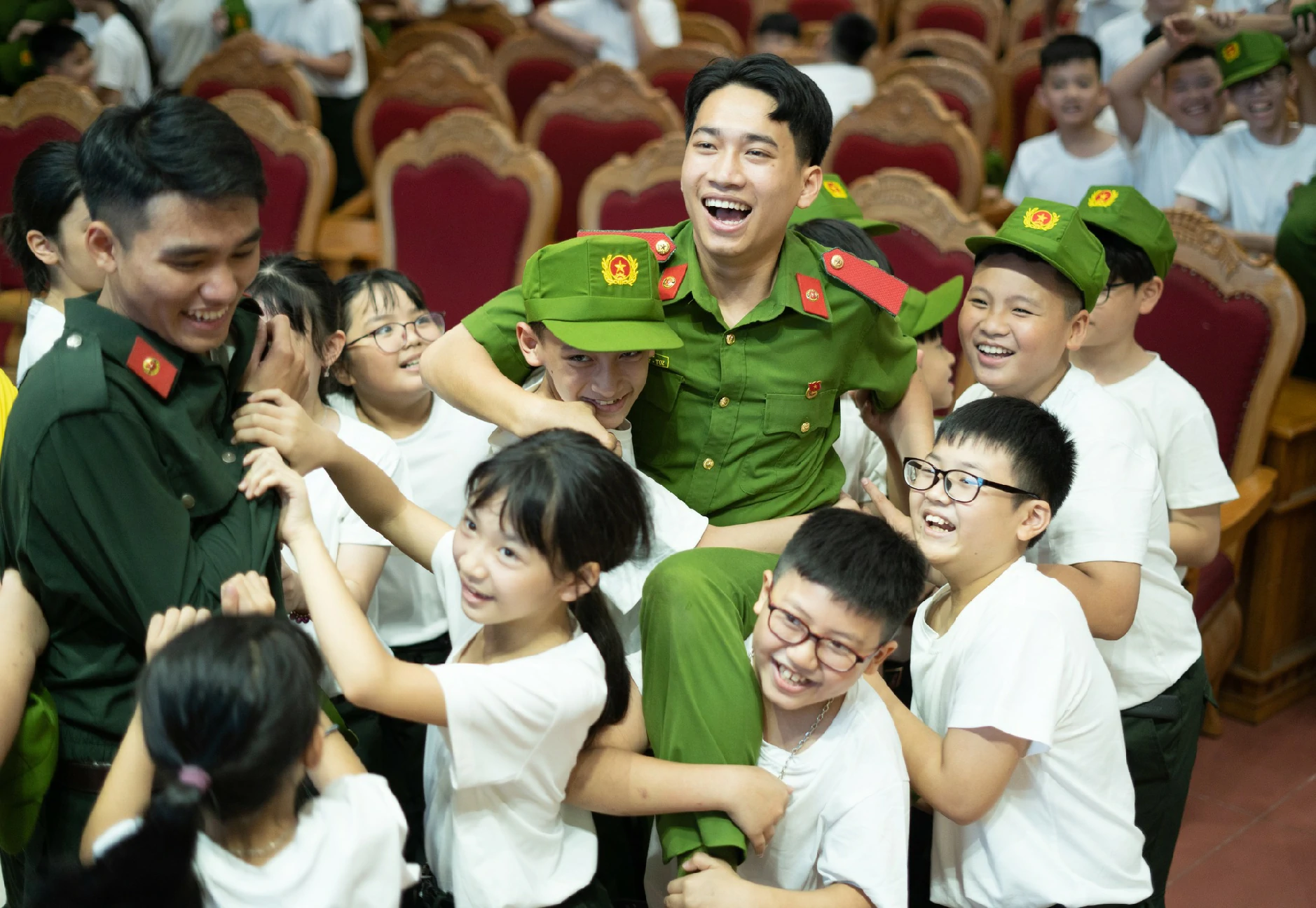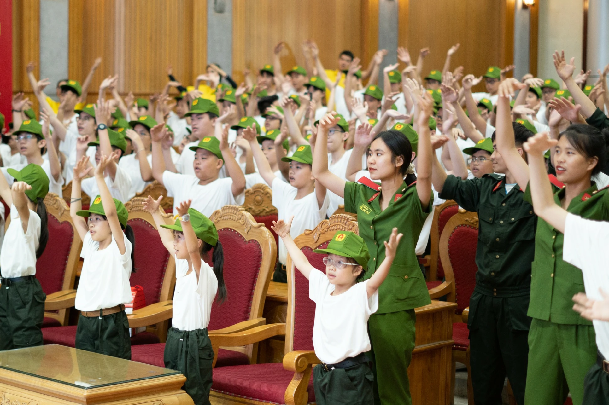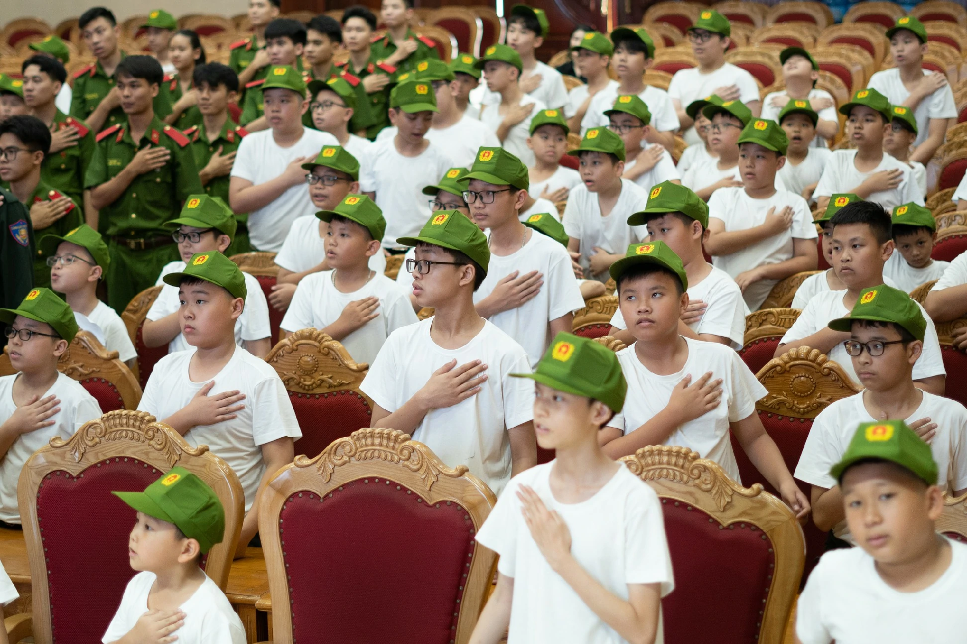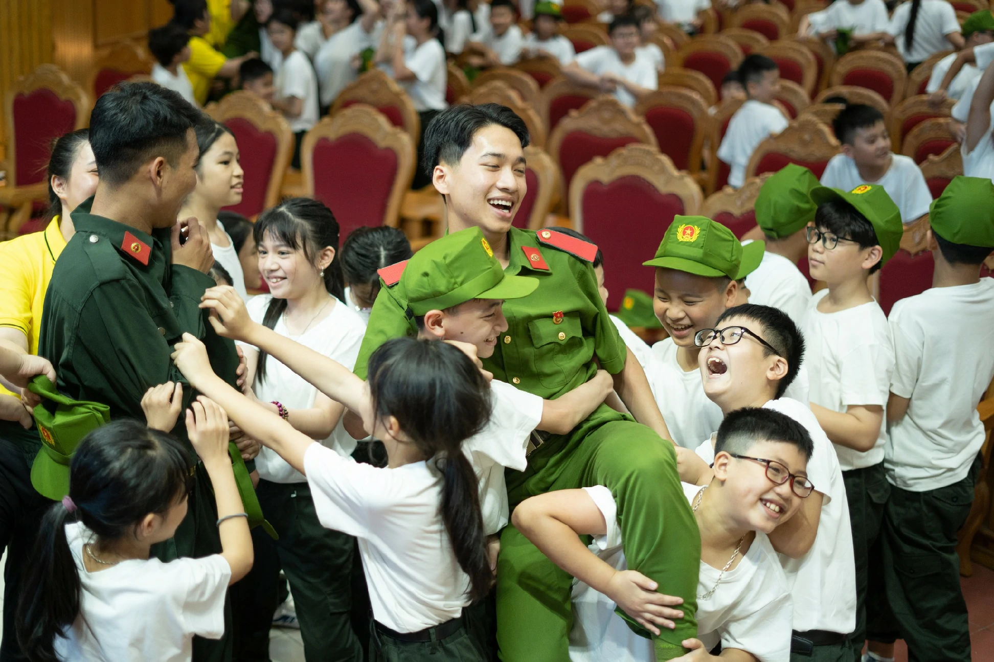 au khi ăn sáng, các chiến sĩ công an nhí bắt đầu sinh hoạt tiểu đội rồi di chuyển về hội trường Trần Đức Trường để đến với chuyên đề: ” Kỹ năng sử dụng Internet an toàn và thông minh” ![]()
