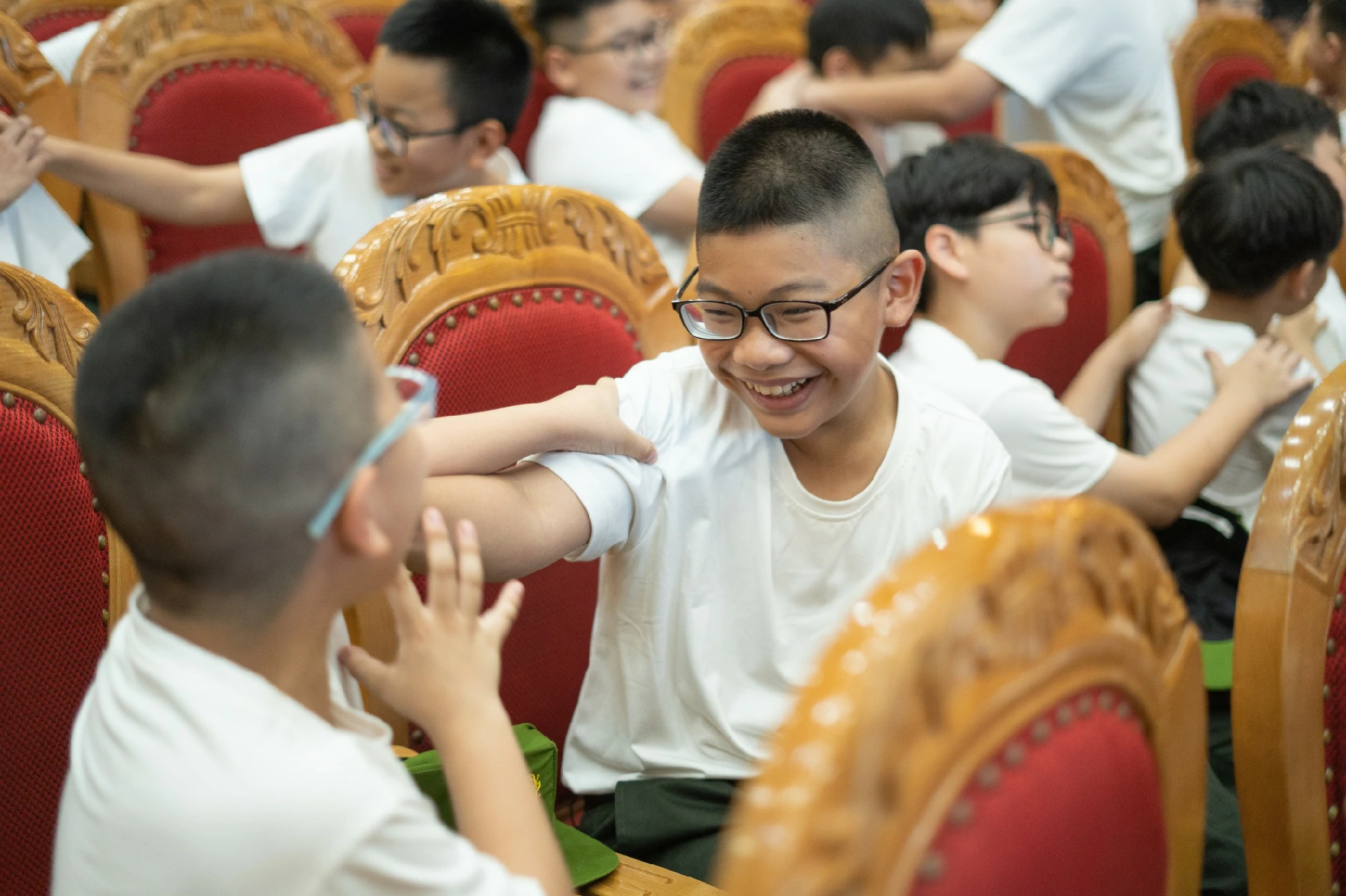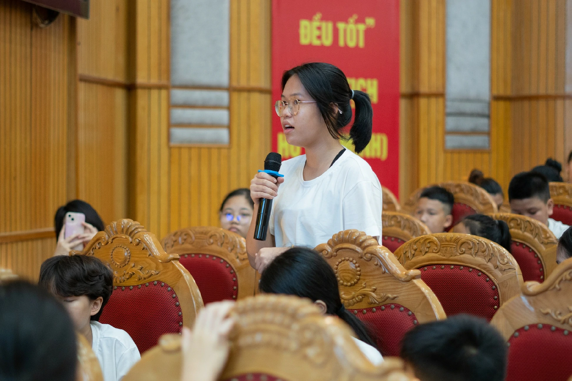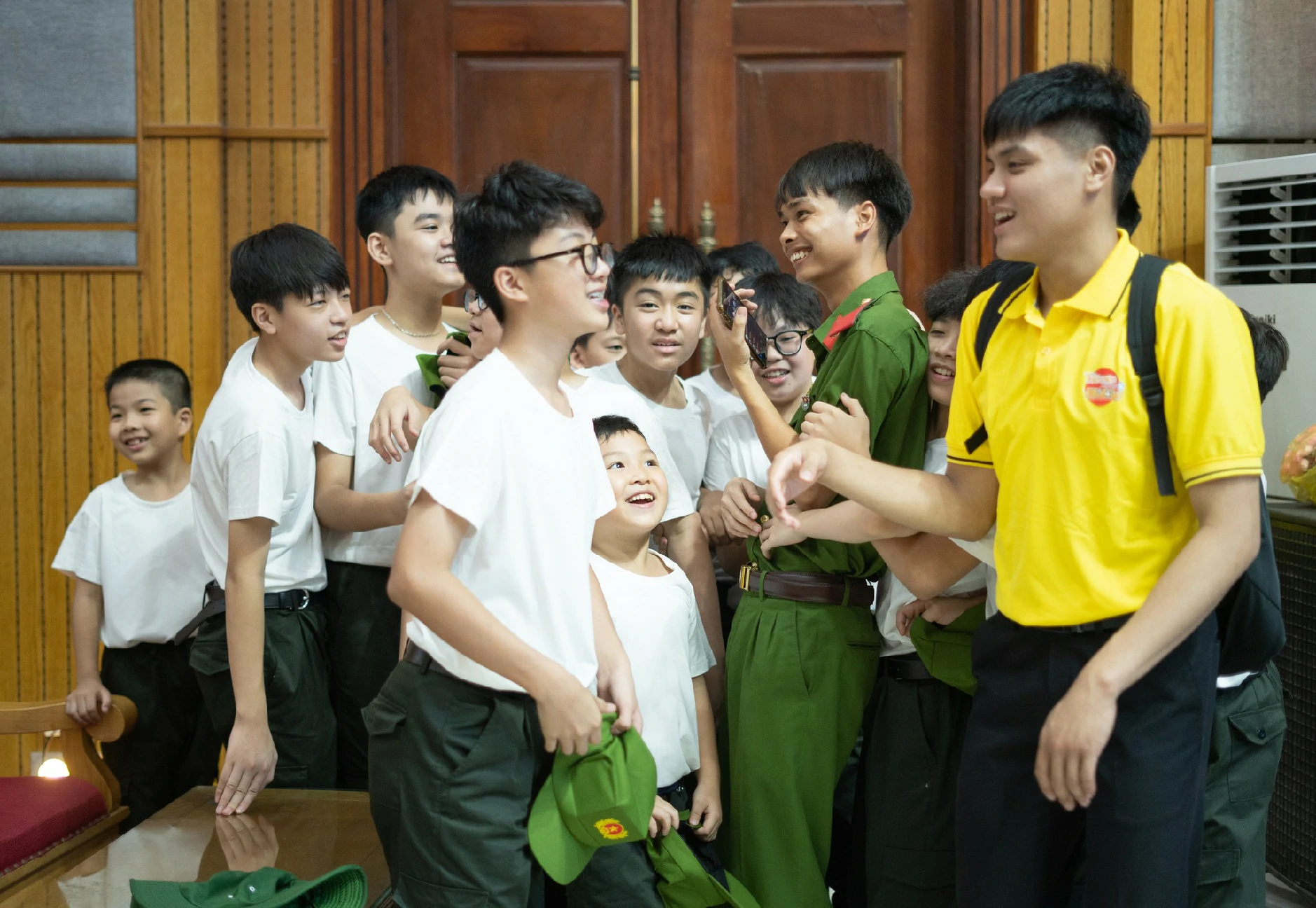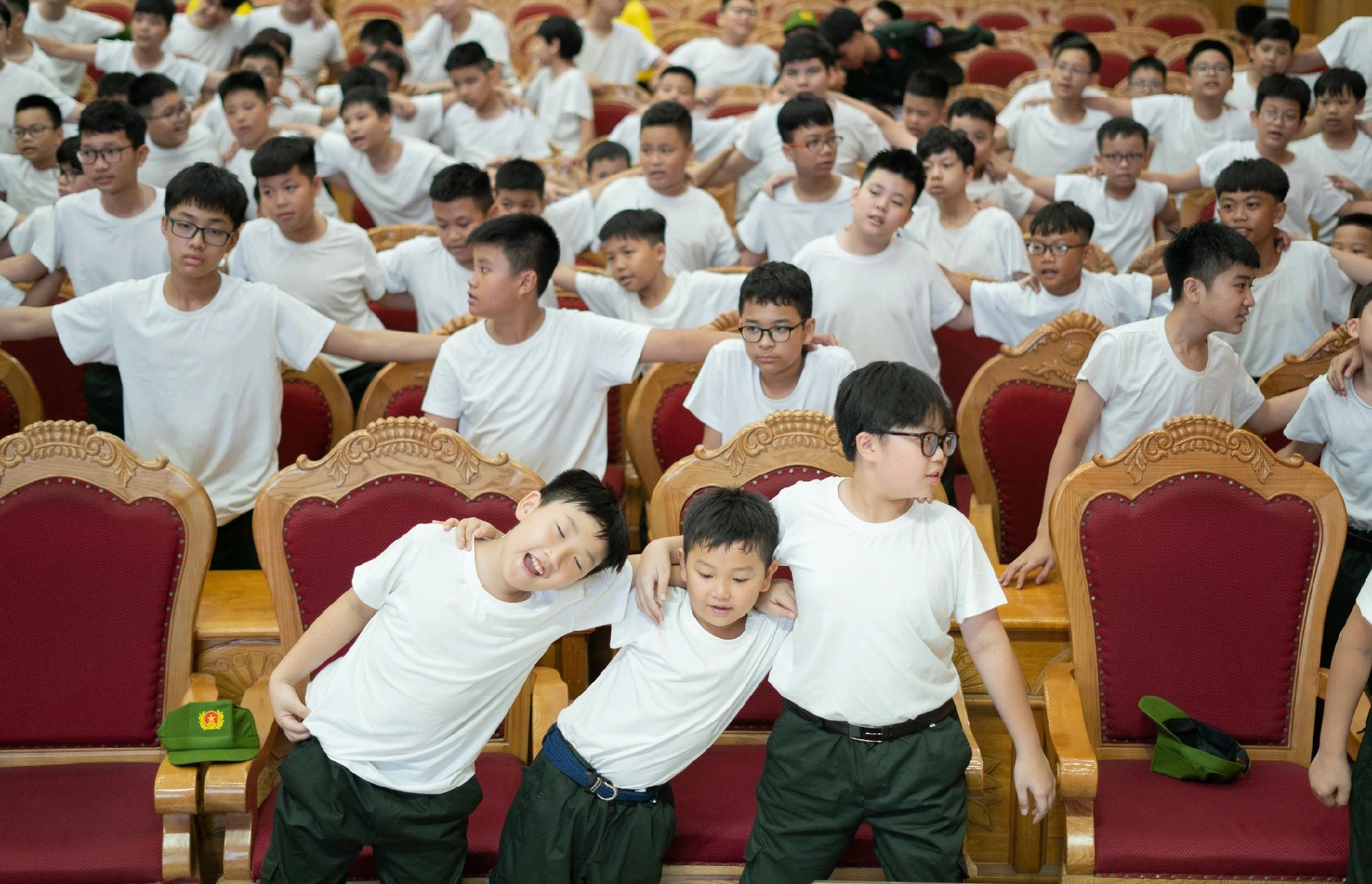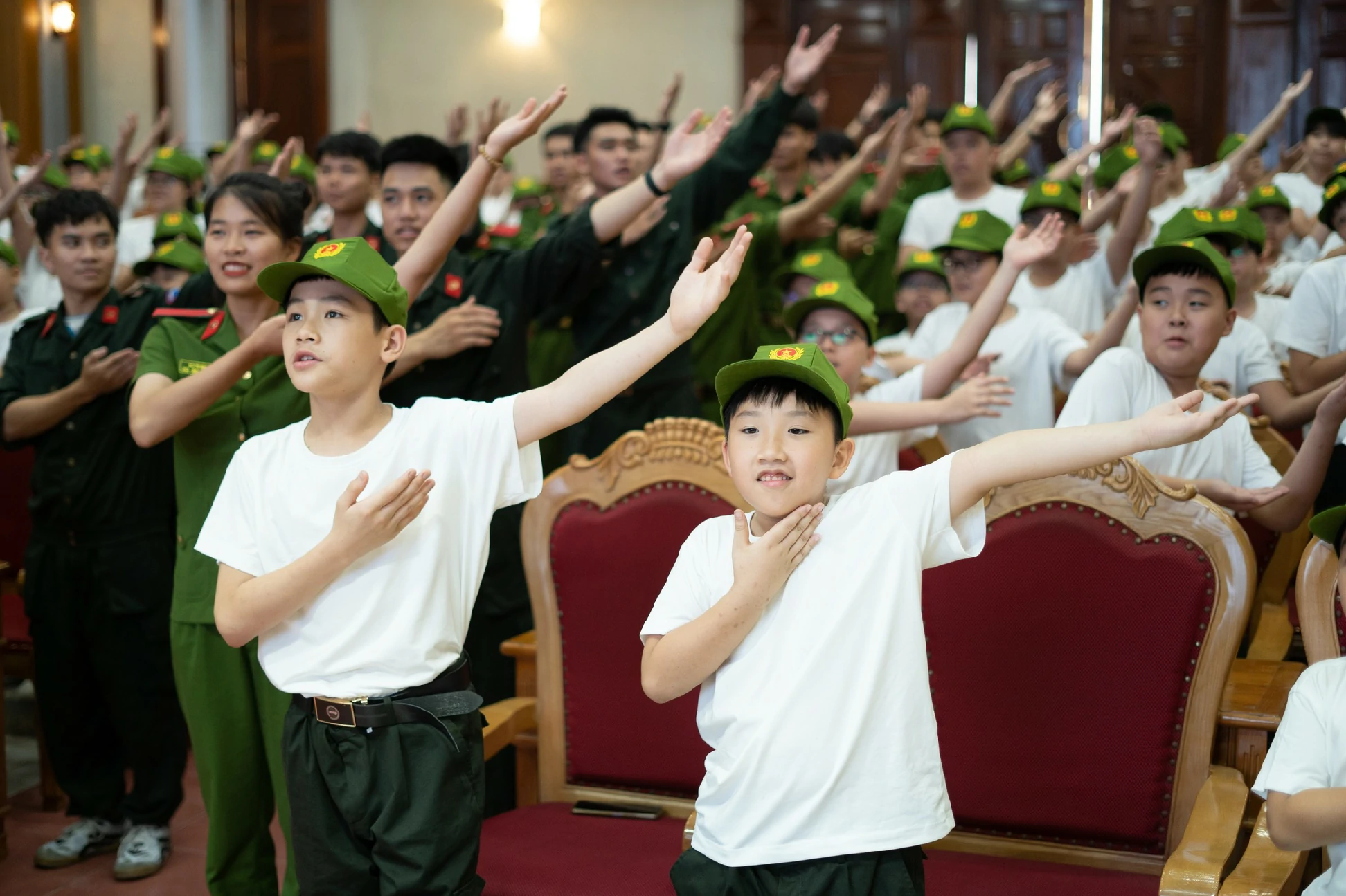 au khi ăn sáng, các chiến sĩ công an nhí bắt đầu sinh hoạt tiểu đội rồi di chuyển về hội trường Trần Đức Trường để đến với chuyên đề: ” Kỹ năng sử dụng Internet an toàn và thông minh” ![]()