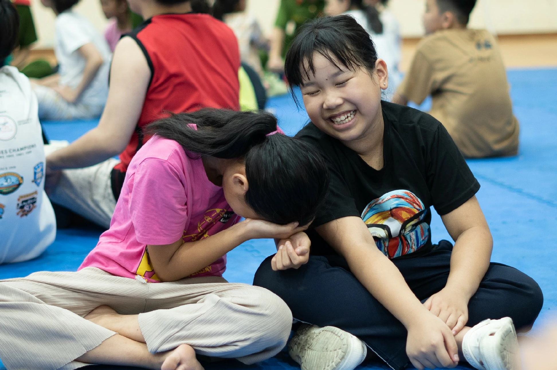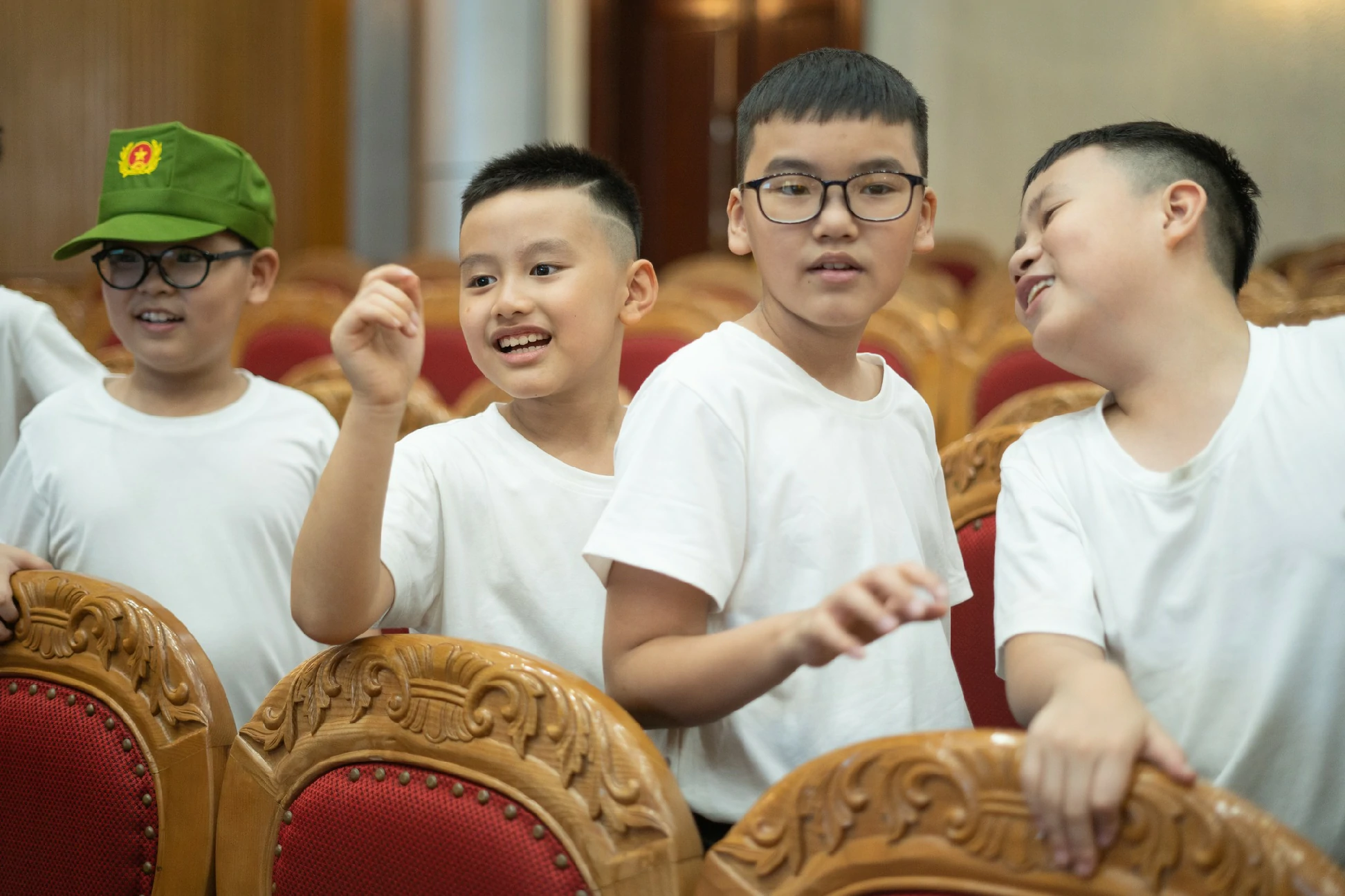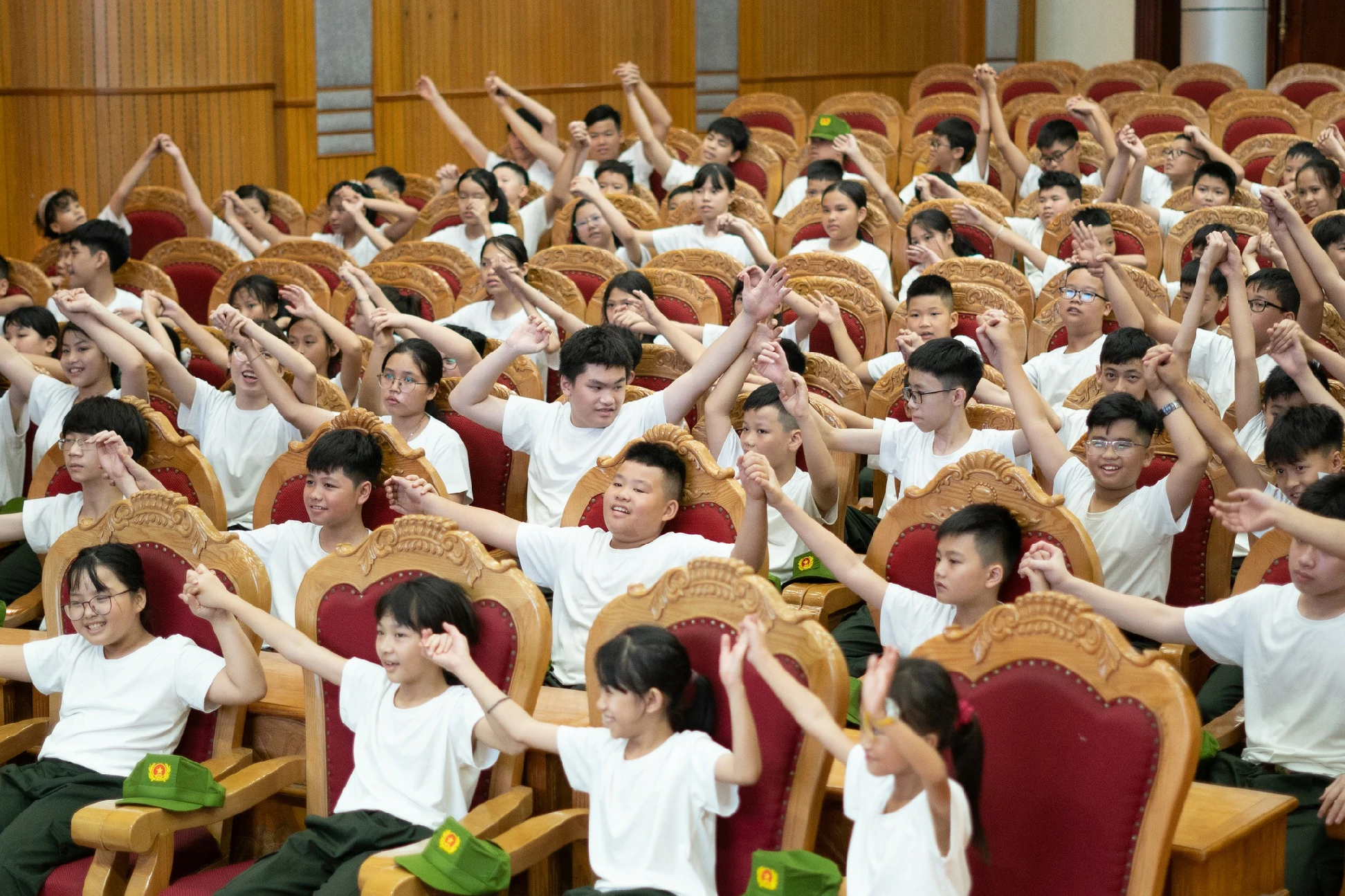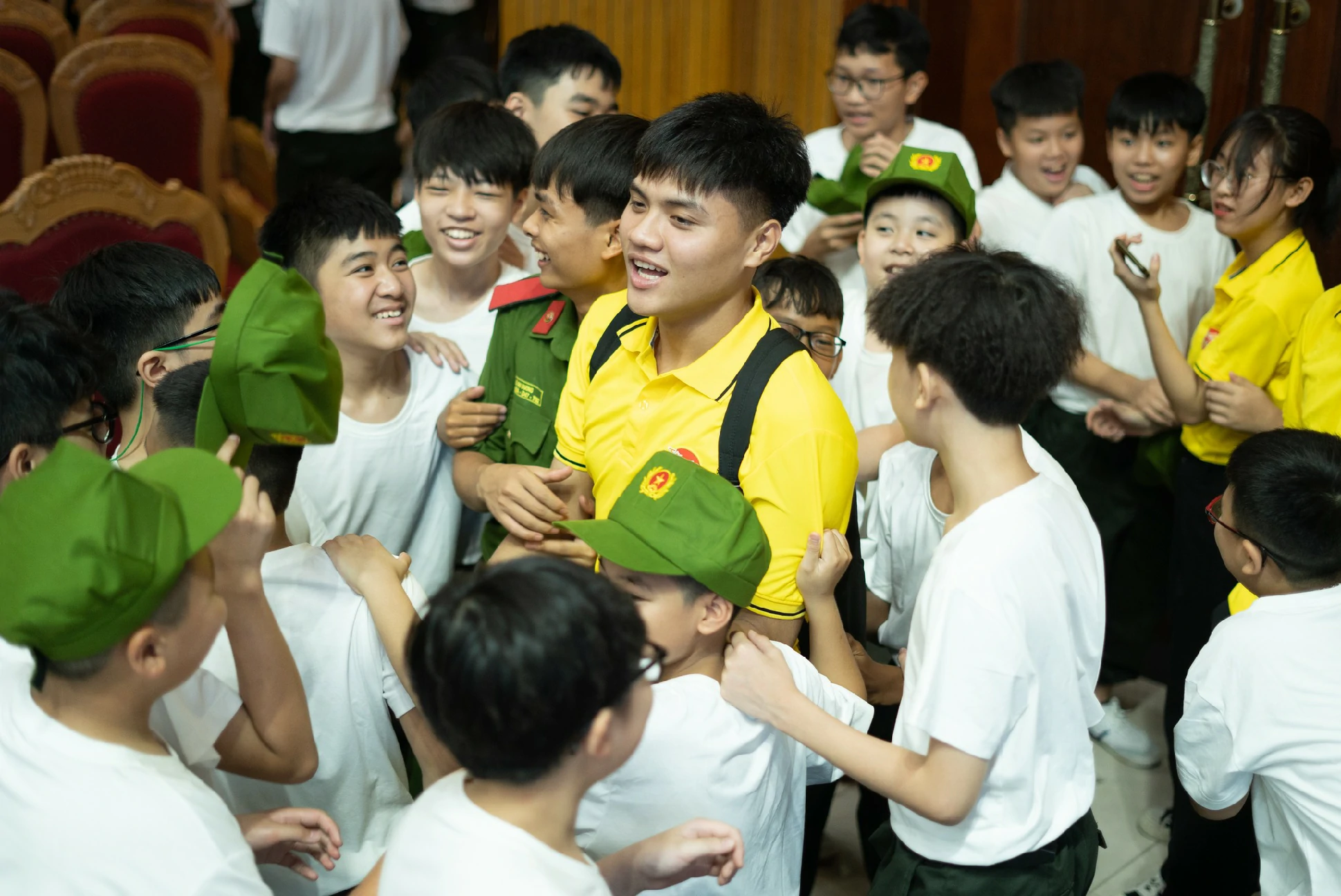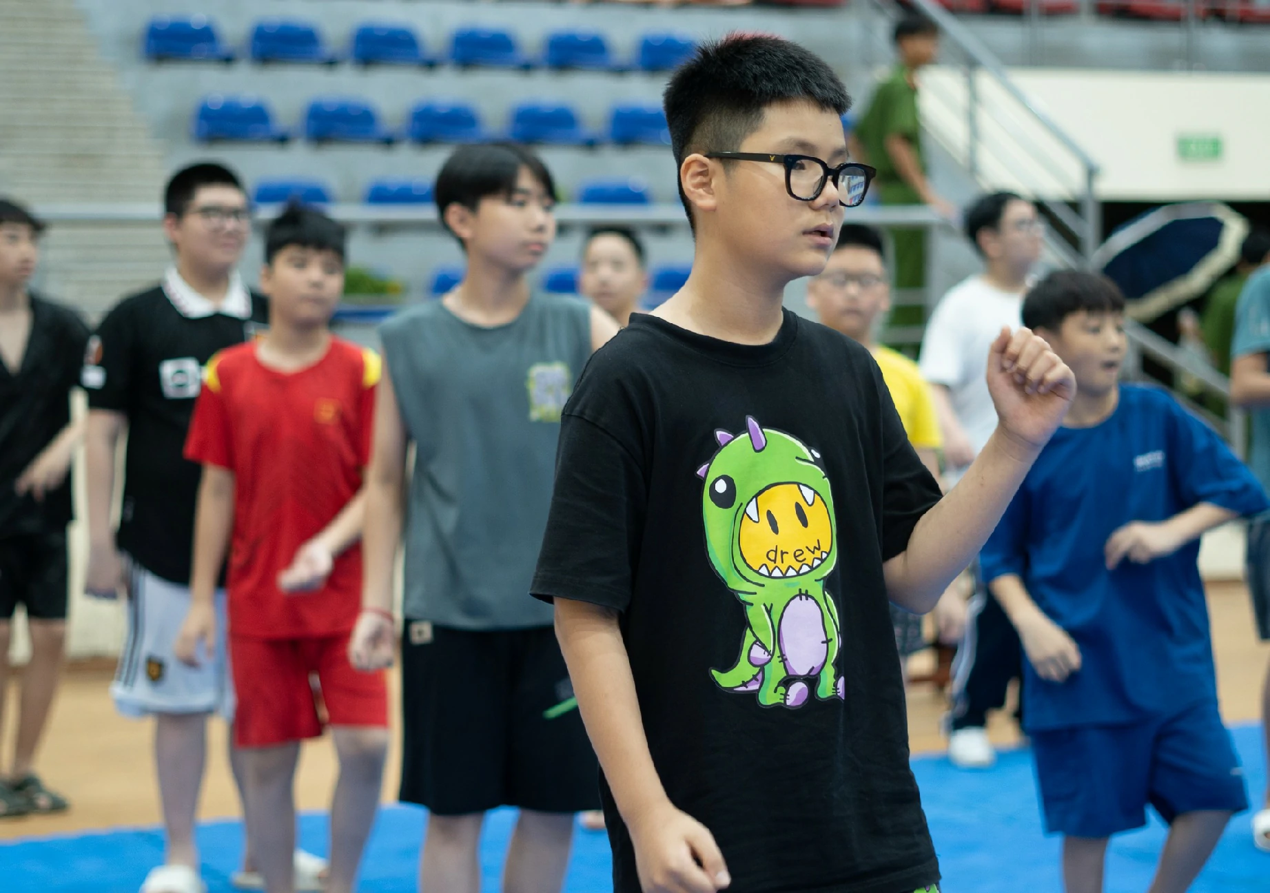 au khi ăn sáng, các chiến sĩ công an nhí bắt đầu sinh hoạt tiểu đội rồi di chuyển về hội trường Trần Đức Trường để đến với chuyên đề: ” Kỹ năng sử dụng Internet an toàn và thông minh” ![]()