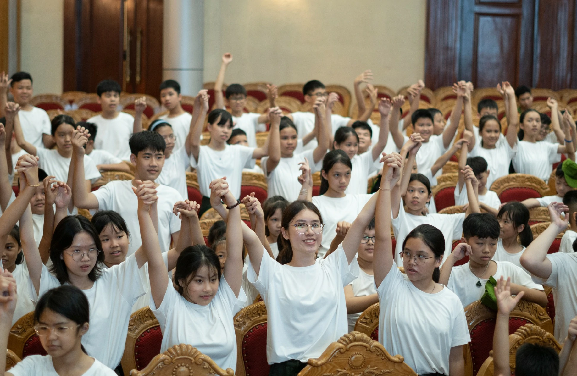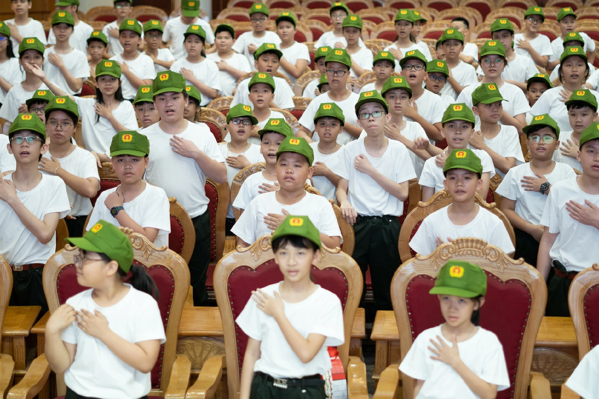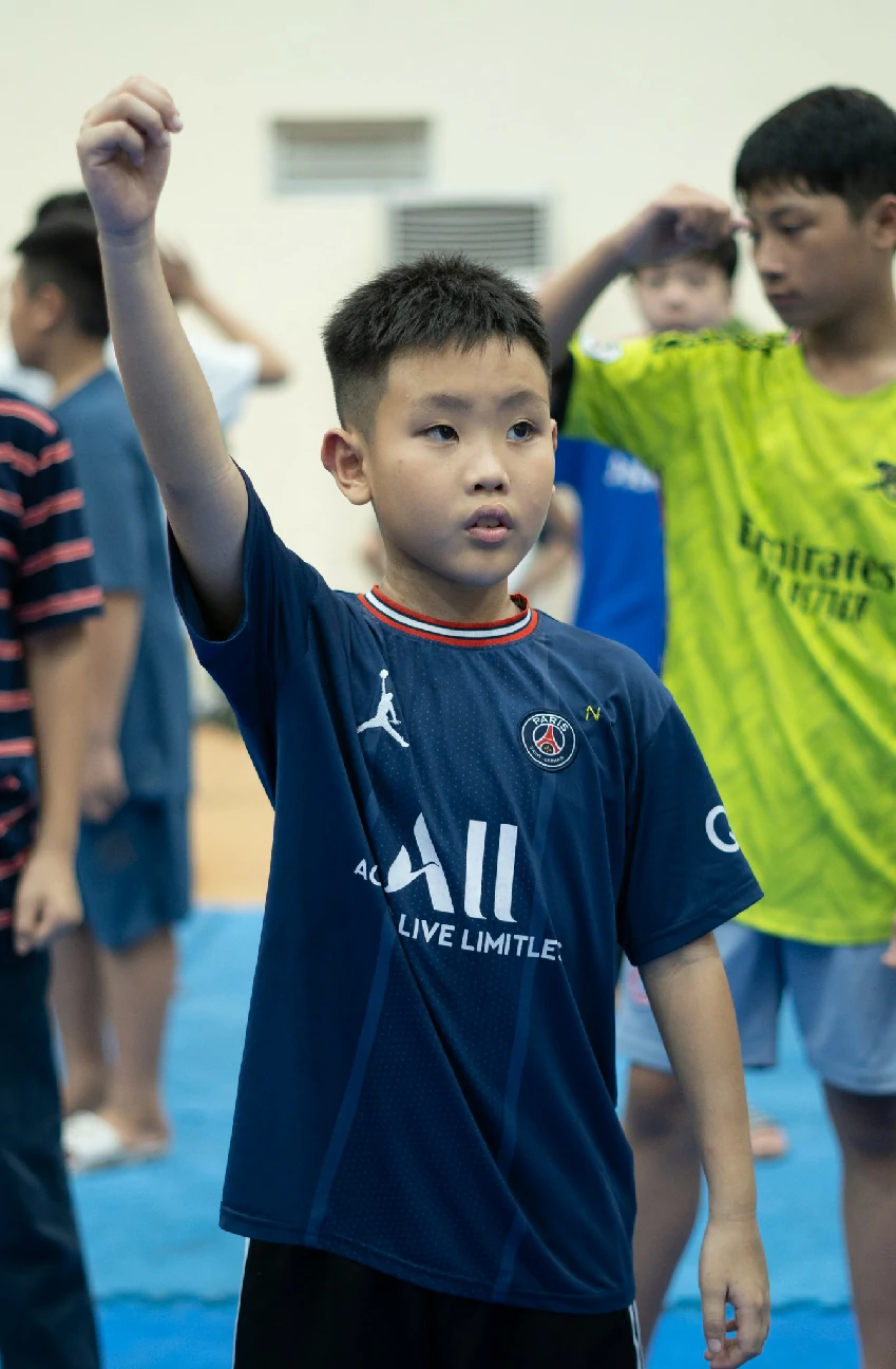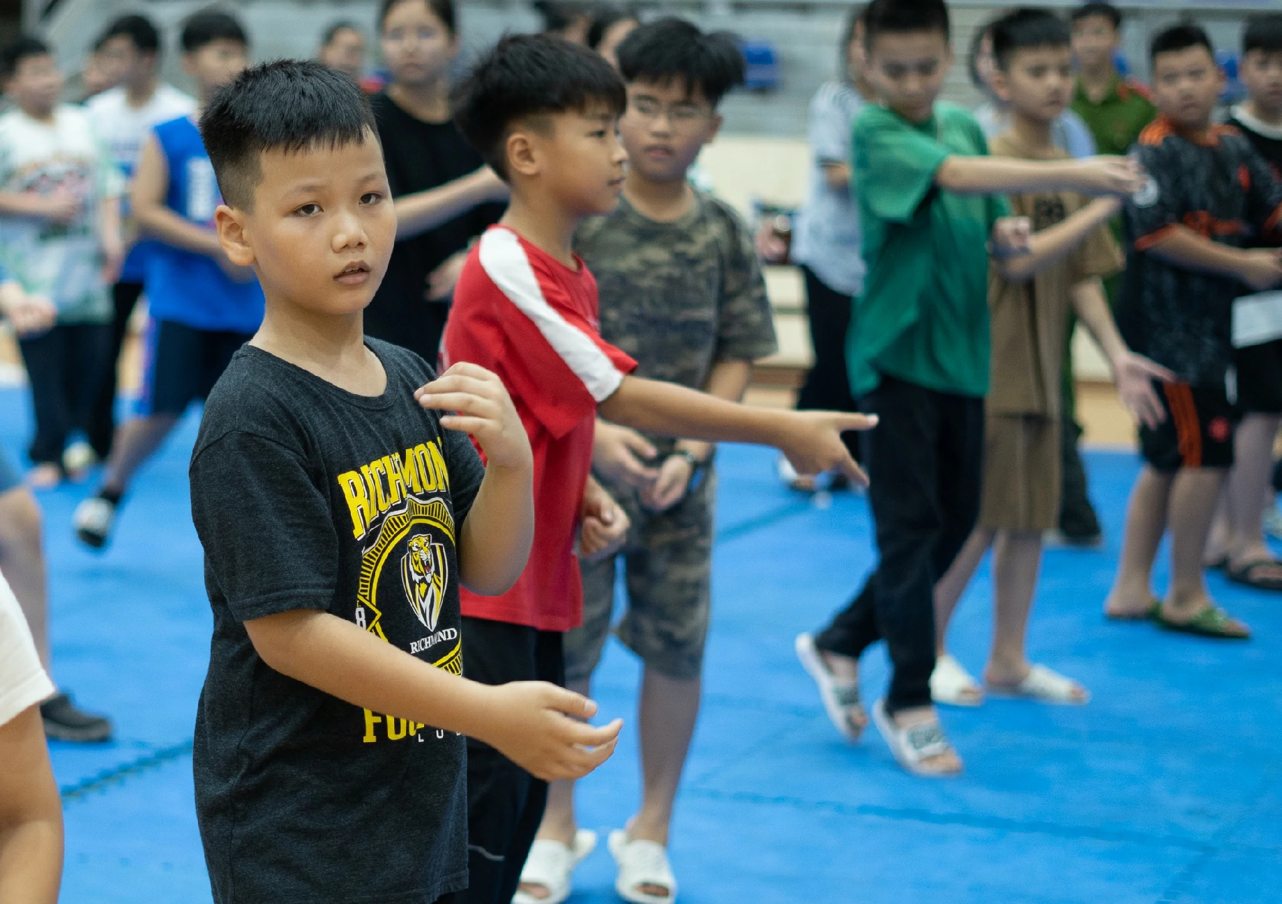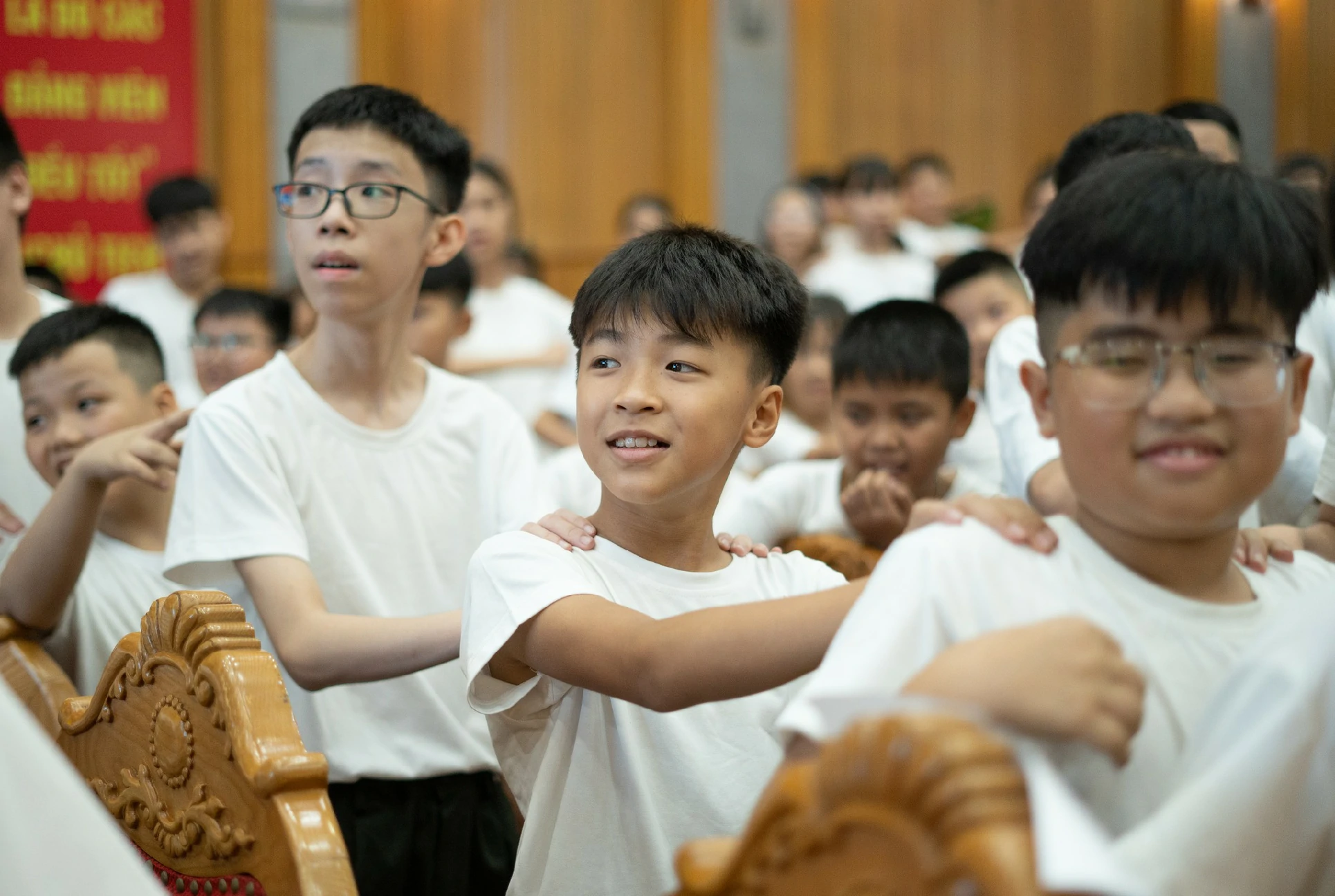 au khi ăn sáng, các chiến sĩ công an nhí bắt đầu sinh hoạt tiểu đội rồi di chuyển về hội trường Trần Đức Trường để đến với chuyên đề: ” Kỹ năng sử dụng Internet an toàn và thông minh” ![]()