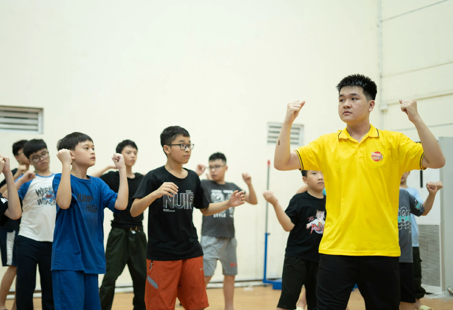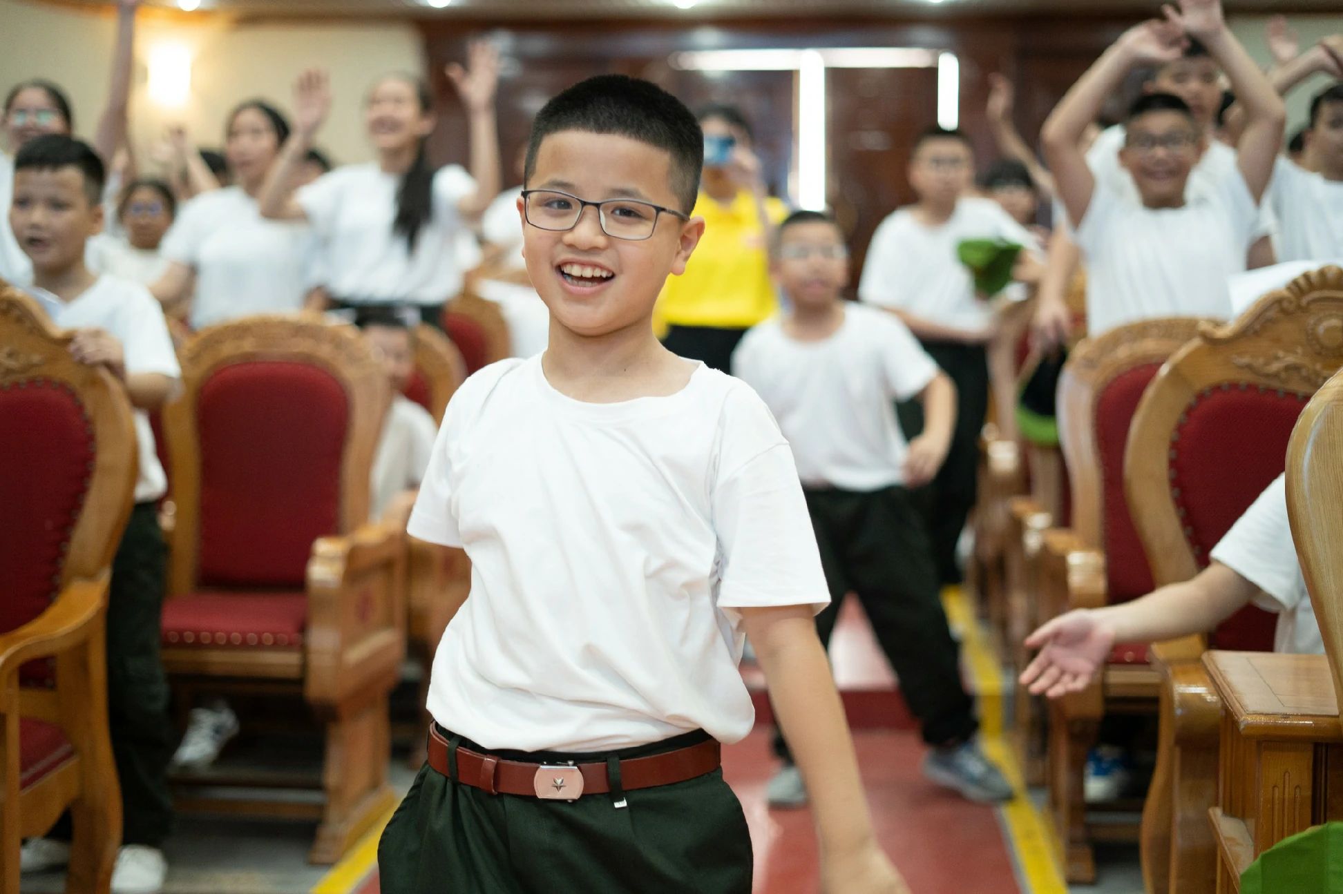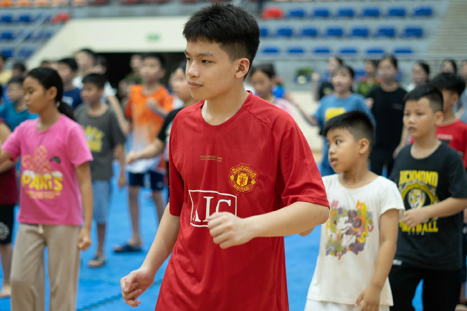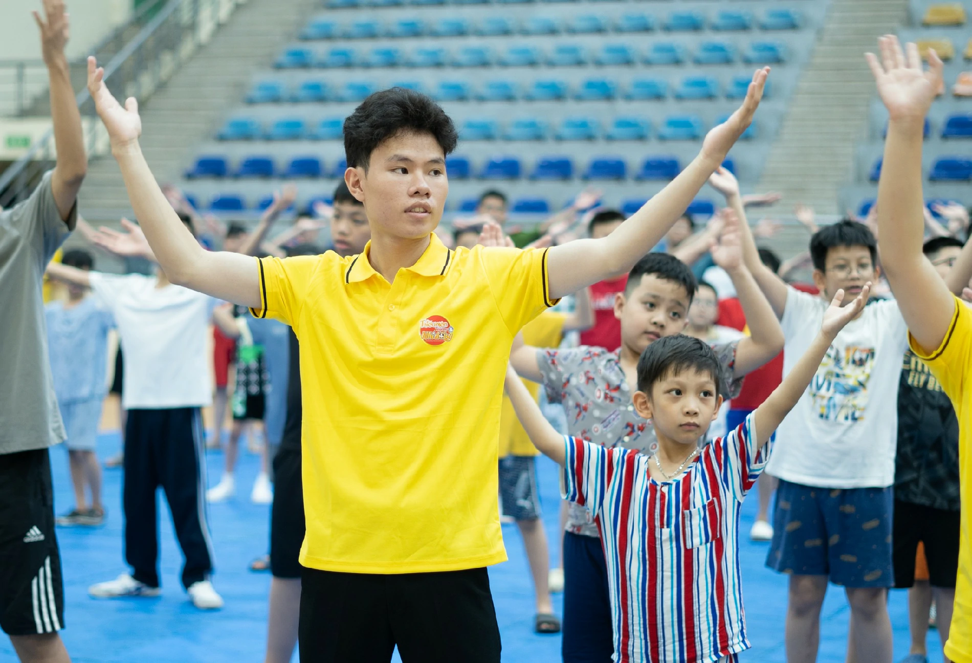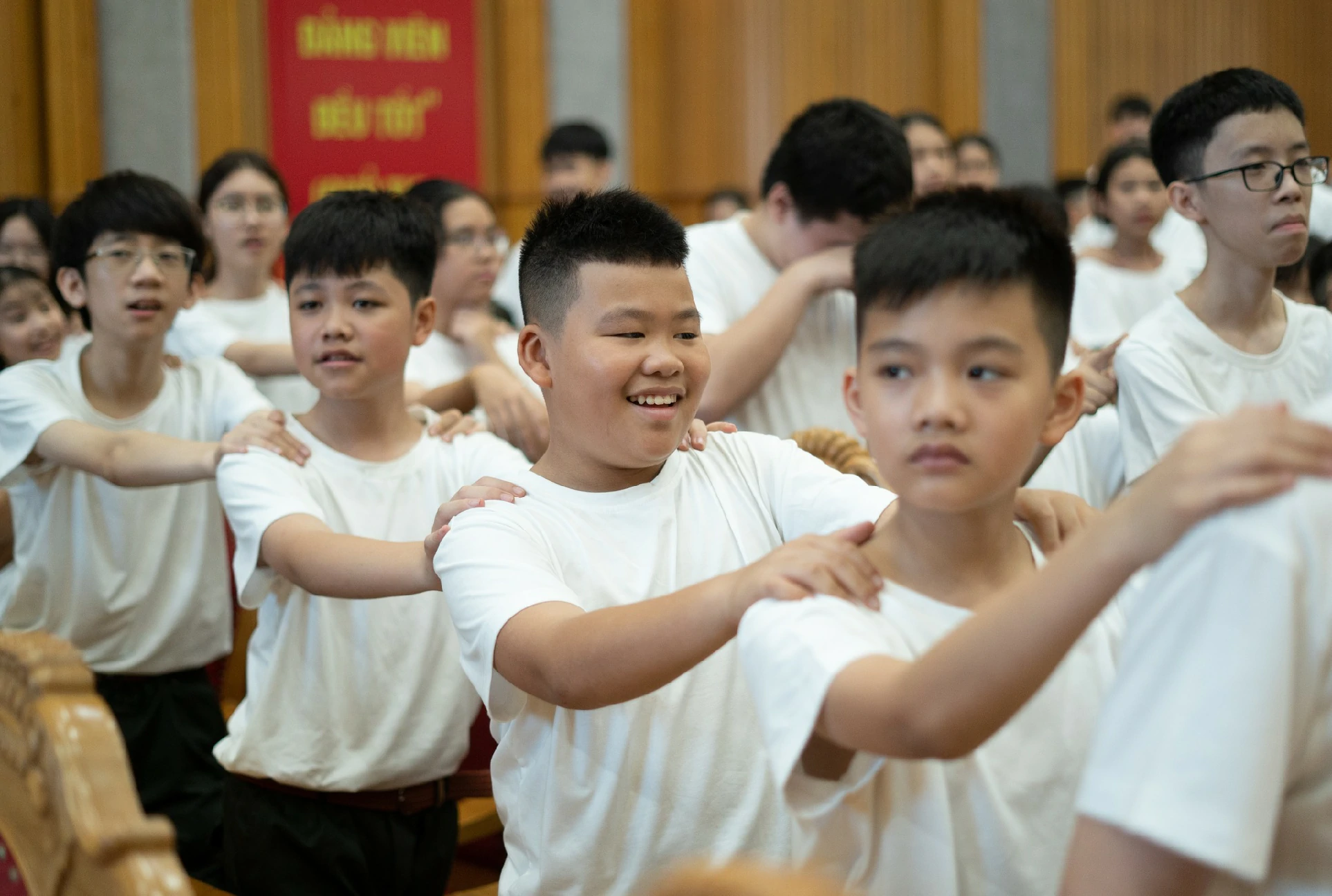 au khi ăn sáng, các chiến sĩ công an nhí bắt đầu sinh hoạt tiểu đội rồi di chuyển về hội trường Trần Đức Trường để đến với chuyên đề: ” Kỹ năng sử dụng Internet an toàn và thông minh” ![]()