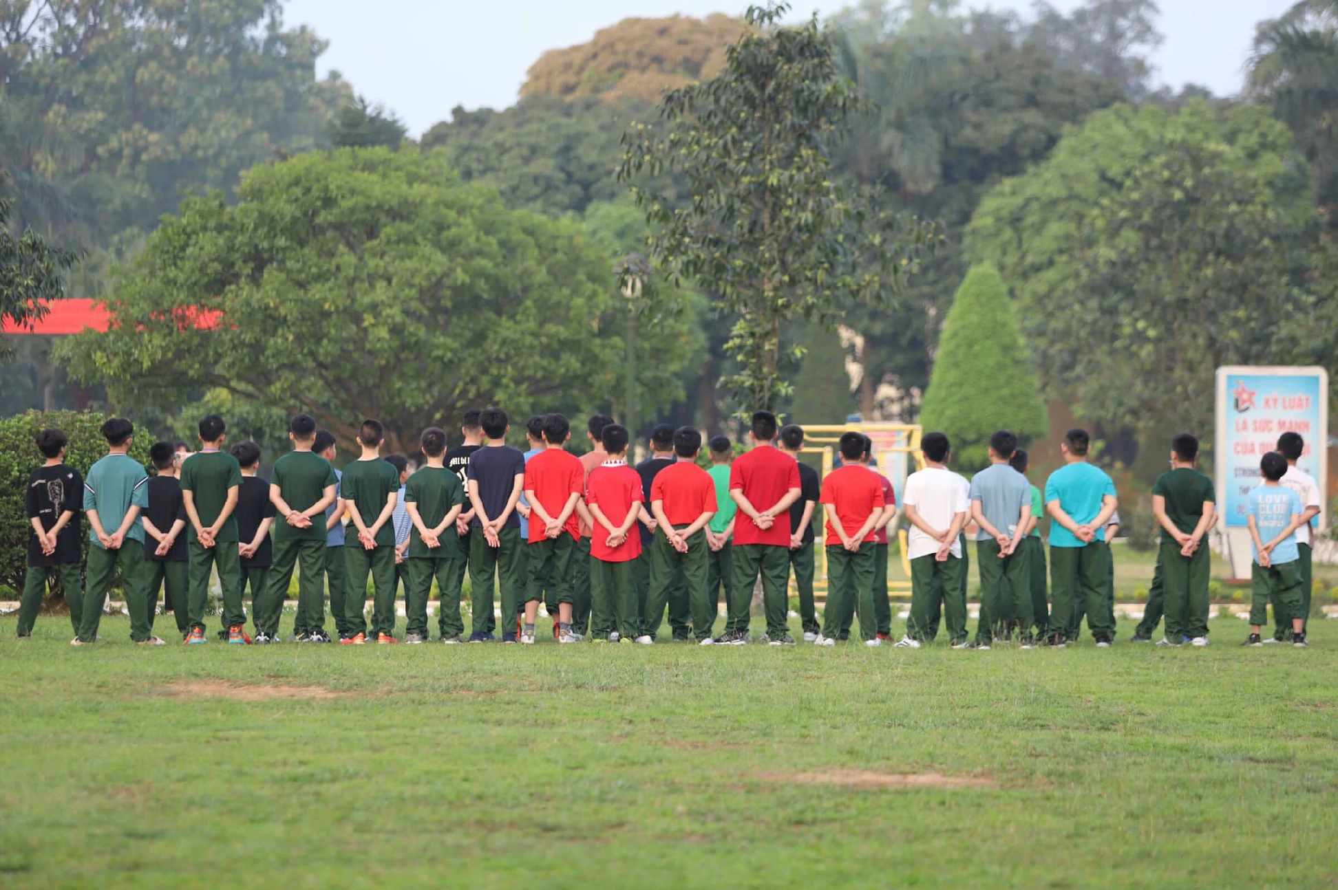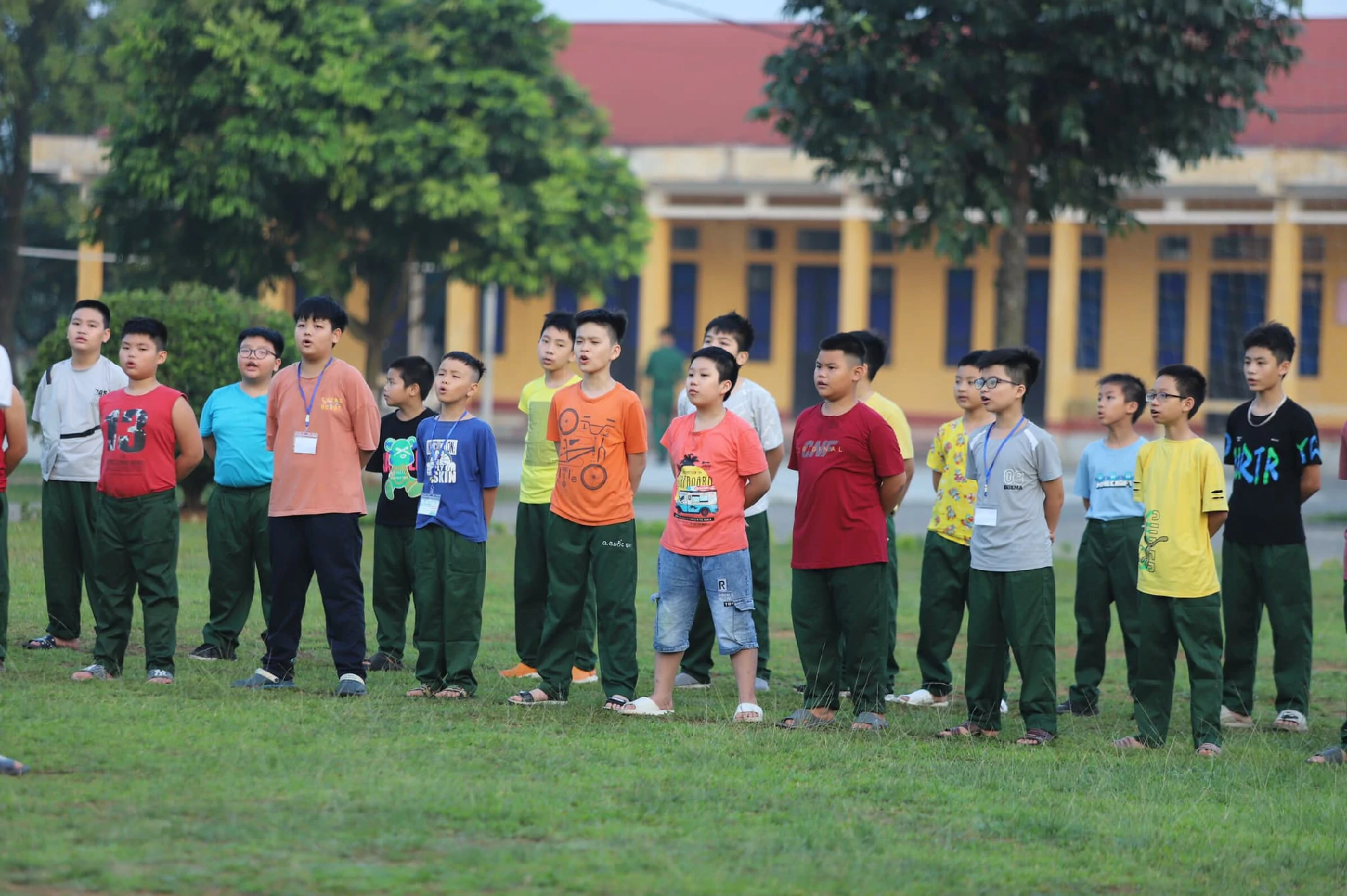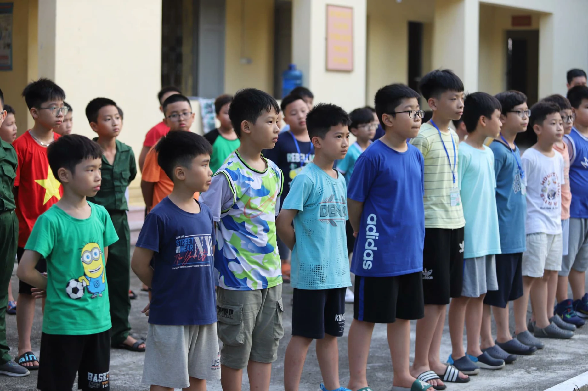 Ngày đầu dậy sớm dù còn nhiều bỡ ngỡ nhưng với sự động viên của các đồng chí điều phối viên, các chiến sĩ nhỏ đã dần thích nghi, làm quen được với giờ giấc trong quân ngũ.