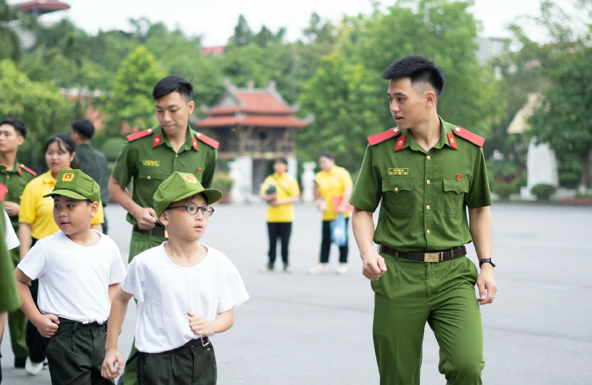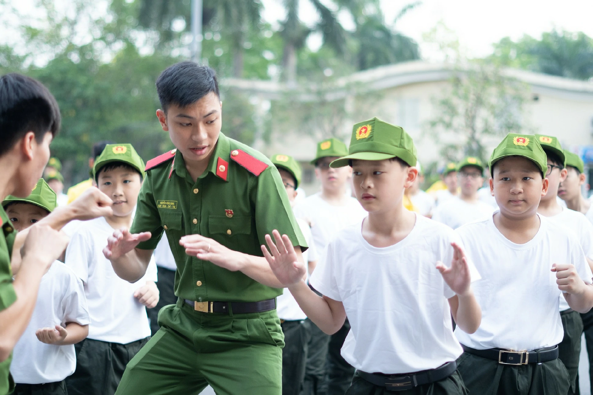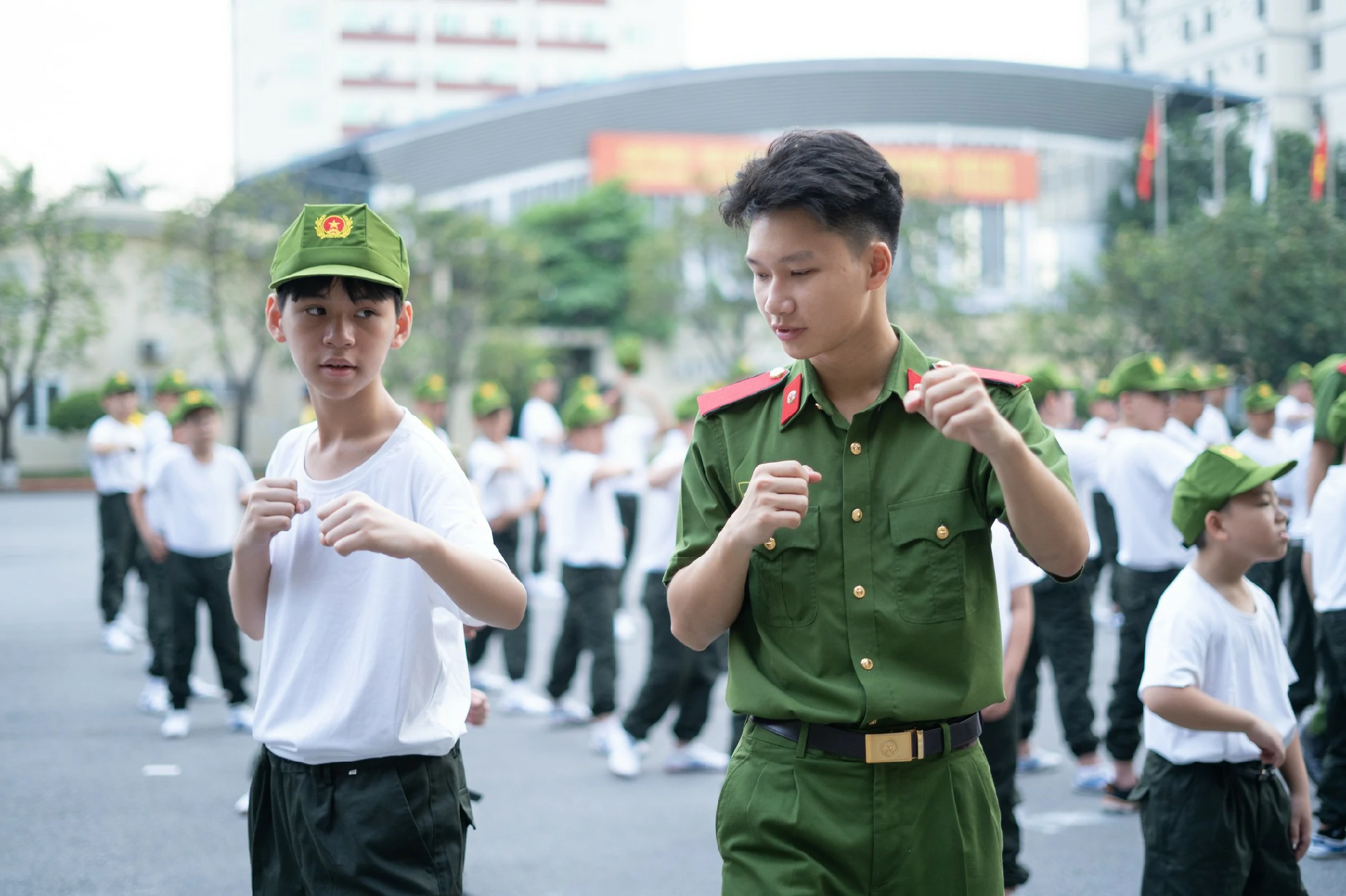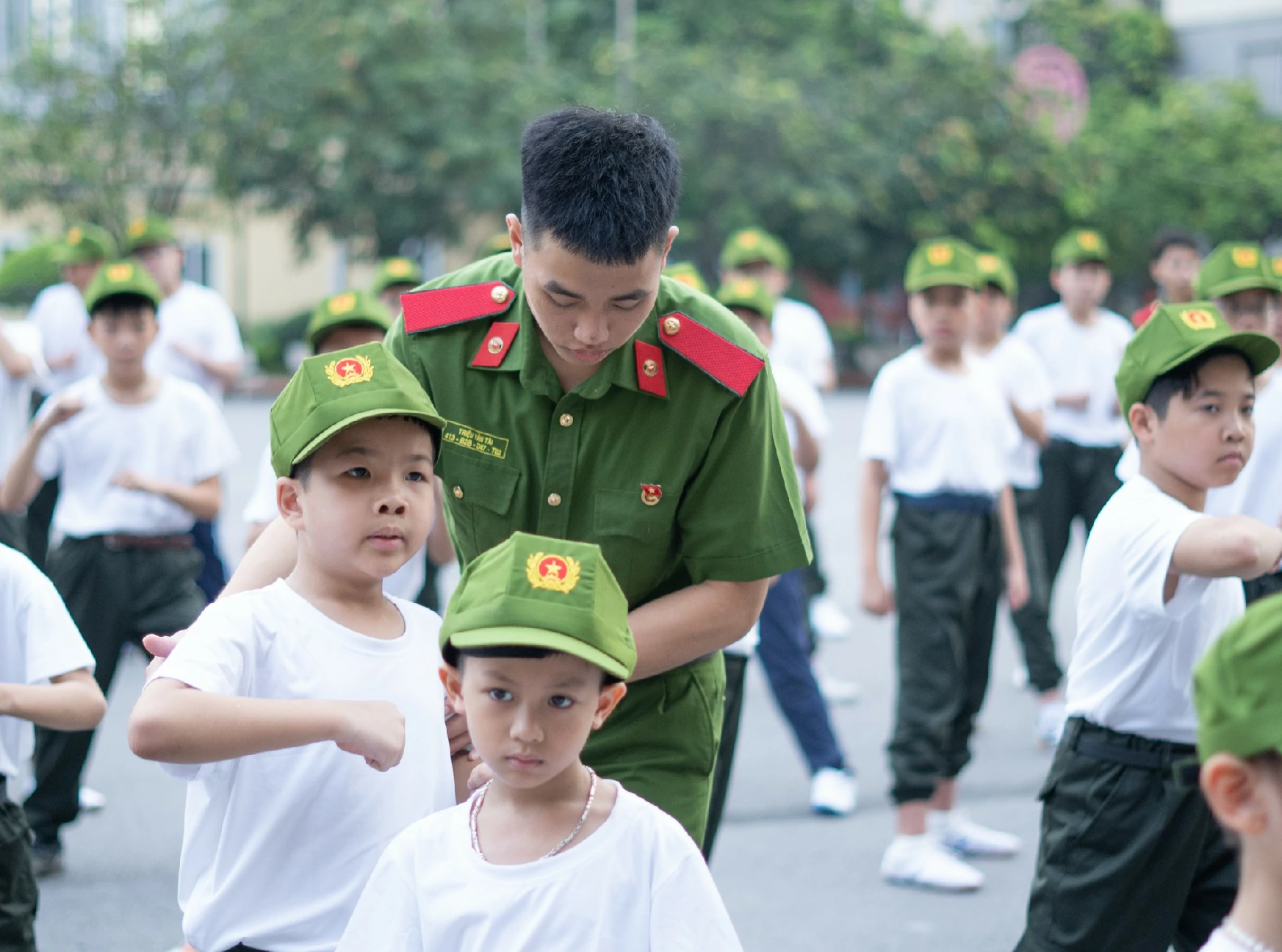 Buổi sáng đầu tiên thức dậy tại Học viện Cảnh sát nhân dân với không khí trong lành, thoáng mát, các chiến sĩ công an nhí đã được báo thức từ 5 giờ 30 theo đúng quy định để tập thể dục.