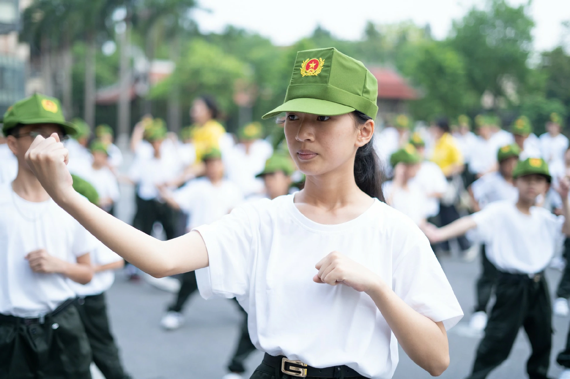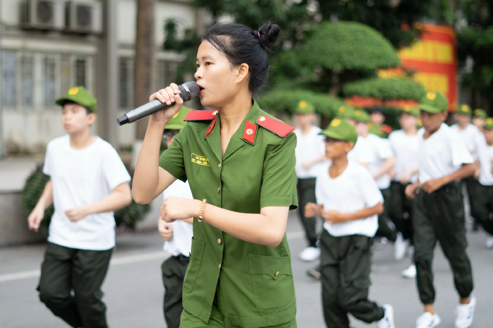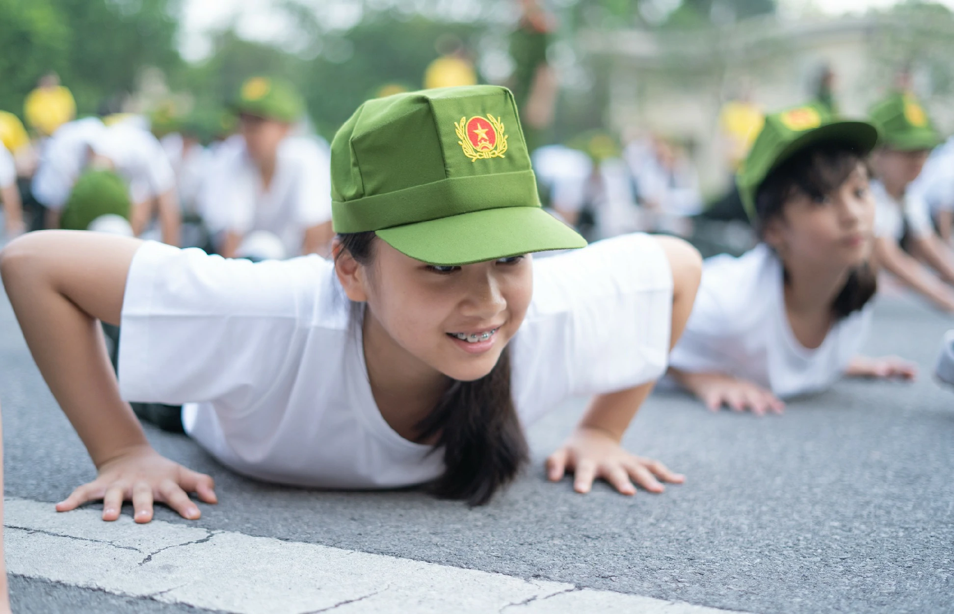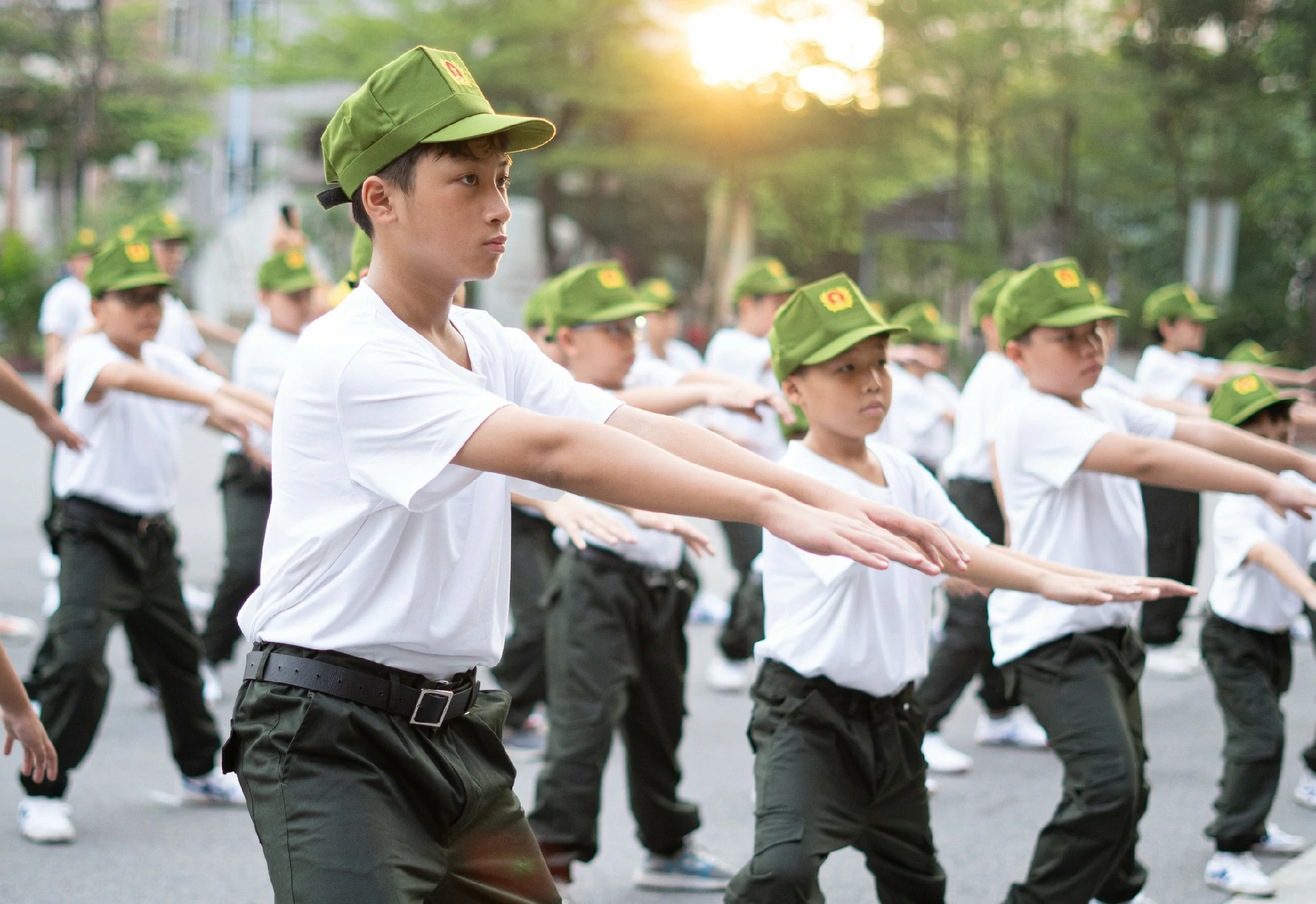 Buổi sáng đầu tiên thức dậy tại Học viện Cảnh sát nhân dân với không khí trong lành, thoáng mát, các chiến sĩ công an nhí đã được báo thức từ 5 giờ 30 theo đúng quy định để tập thể dục.