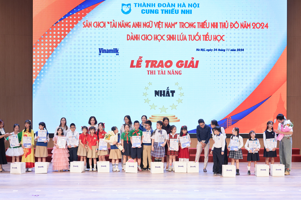 Sáng 24/11, tại Nhà hát Kim Đồng - Cung Thiếu nhi Hà Nội, Vòng Chung khảo Sân chơi “Tài năng Anh ngữ Việt Nam” trong thiếu nhi Thủ đô 2024 cho lứa tuổi tiểu học đã diễn ra thành công tốt đẹp. Các bạn học sinh của 9 trường tiểu học ở Hà Nội cùng phô diễn tài năng thuyết trình tiếng Anh và múa hát, nhảy hiện đại.