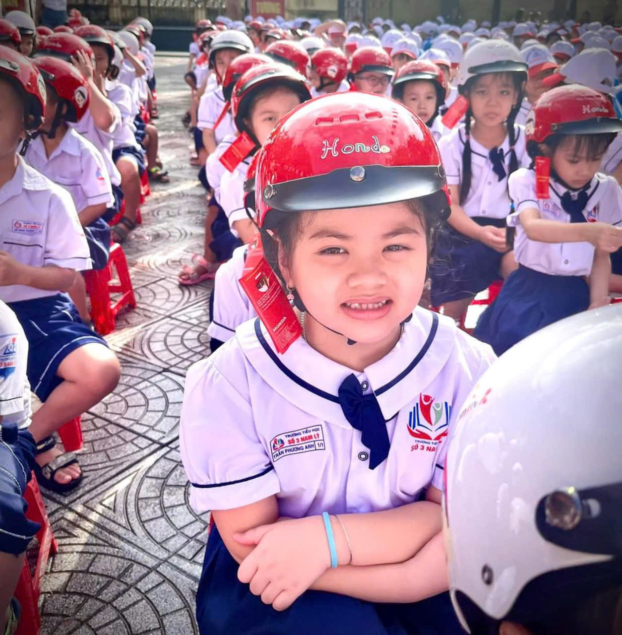 Những chiếc mũ bảo hiểm xinh xắn được trao đến các em trong những ngày đầu tiên bước vào ngưỡng cửa lớp Một sẽ là kỷ niệm đáng nhớ, trở thành tiền đề cho thói quen luôn đội mũ bảo hiểm đạt chuẩn khi tham gia giao thông.