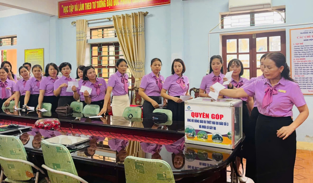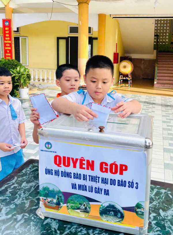 Hưởng ứng lời kêu gọi của Uỷ ban Trung ương Mặt trận Tổ quốc Việt Nam: “Tha thiết kêu gọi đồng bào và chiến sĩ cả nước, đồng bào ta ở nước ngoài, các tổ chức thành viên của Mặt trận Tổ quốc Việt Nam, các tổ chức xã hội, các doanh nghiệp, các nhà hảo tâm ở trong và ngoài nước, người nước ngoài đang sinh sống, làm việc ở Việt Nam chia sẻ, giúp đỡ về tinh thần, vật chất, góp phần cùng với Đảng, Nhà nước nhanh chóng khôi phục sản xuất và đời sống của nhân dân. Với tinh thần “nhường cơm sẻ áo”, người có của góp của, người có công góp công, có ít góp ít, có nhiều góp nhiều...”, trường Tiểu học Thị trấn Tiên Điền (huyện Nghi Xuân, tỉnh Hà Tĩnh) đã cùng chung tay ủng hộ đồng bào vị lũ lụt do cơn bão số 3 gây ra.